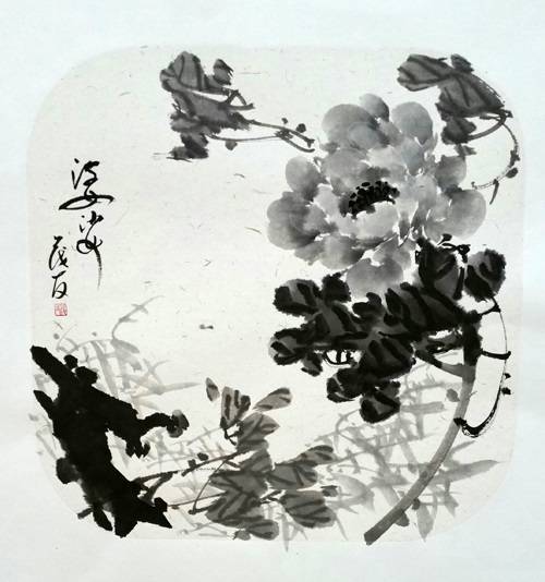 蔡茂友与清代徐扬水墨牡丹作品对比欣赏