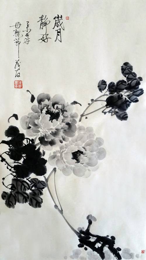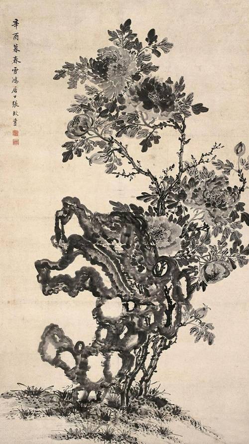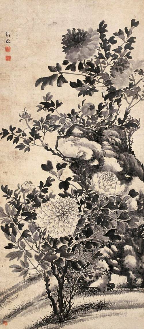 蔡茂友与清代张敔水墨牡丹作品对比欣赏