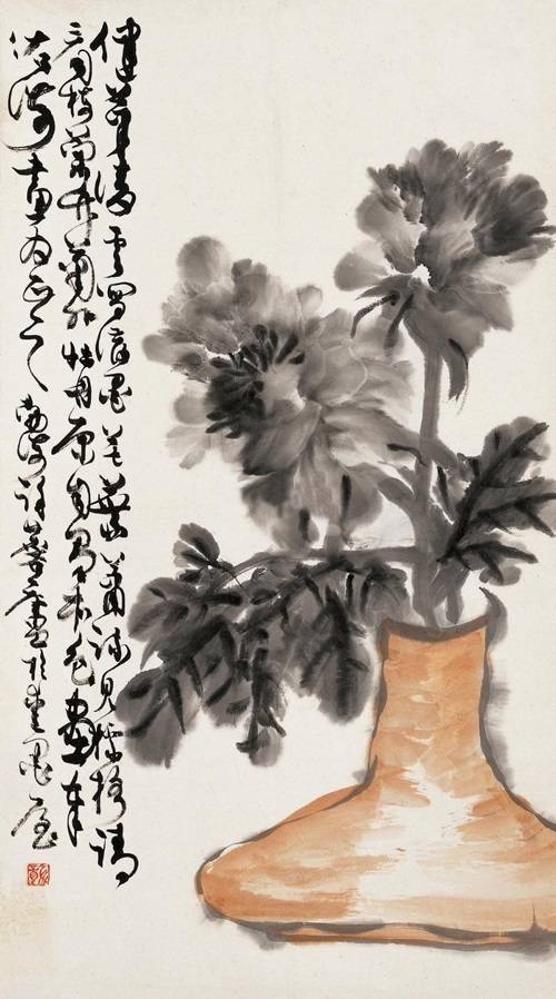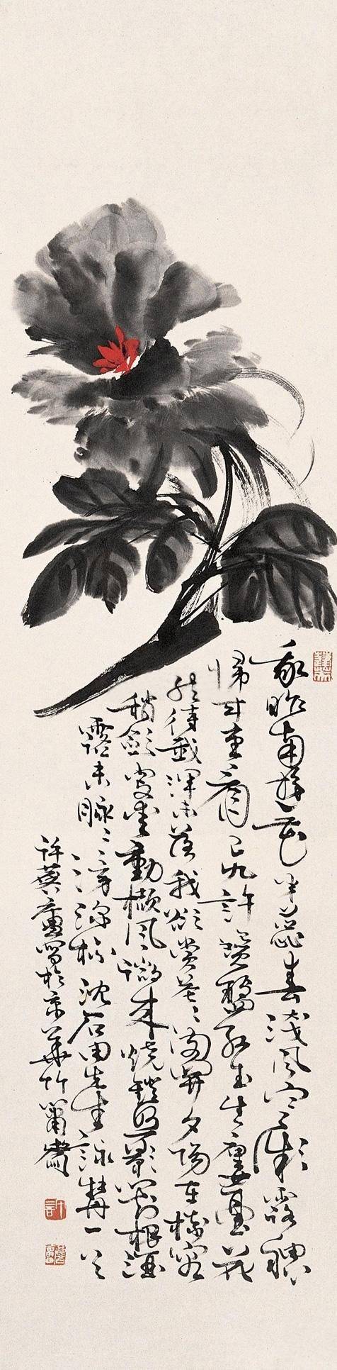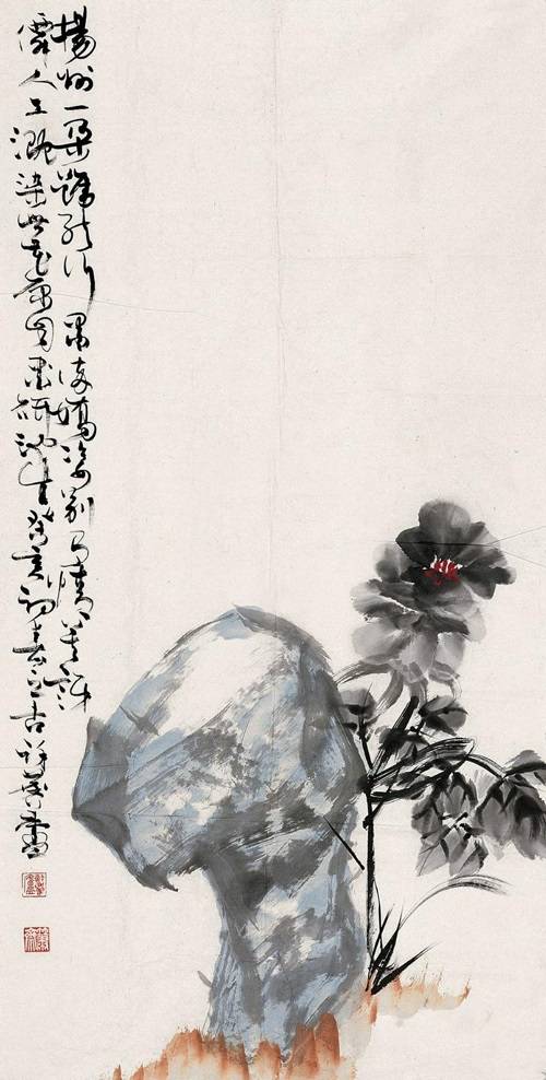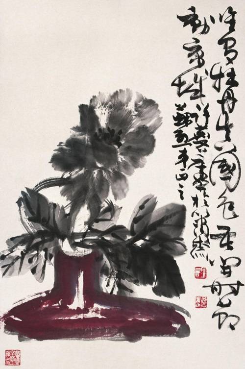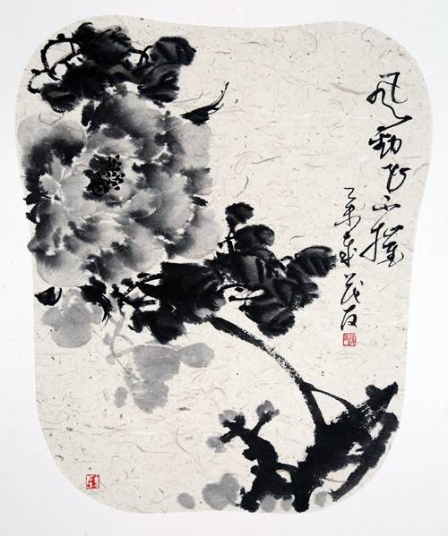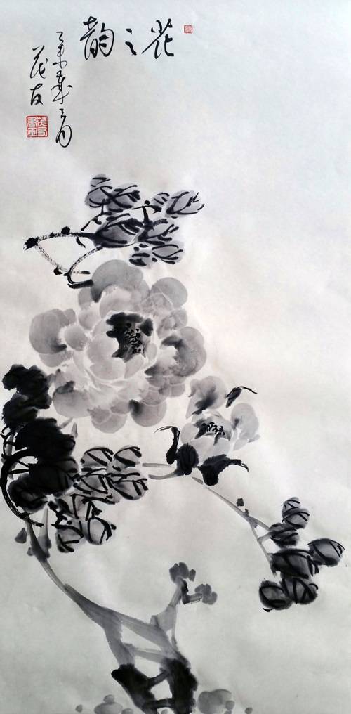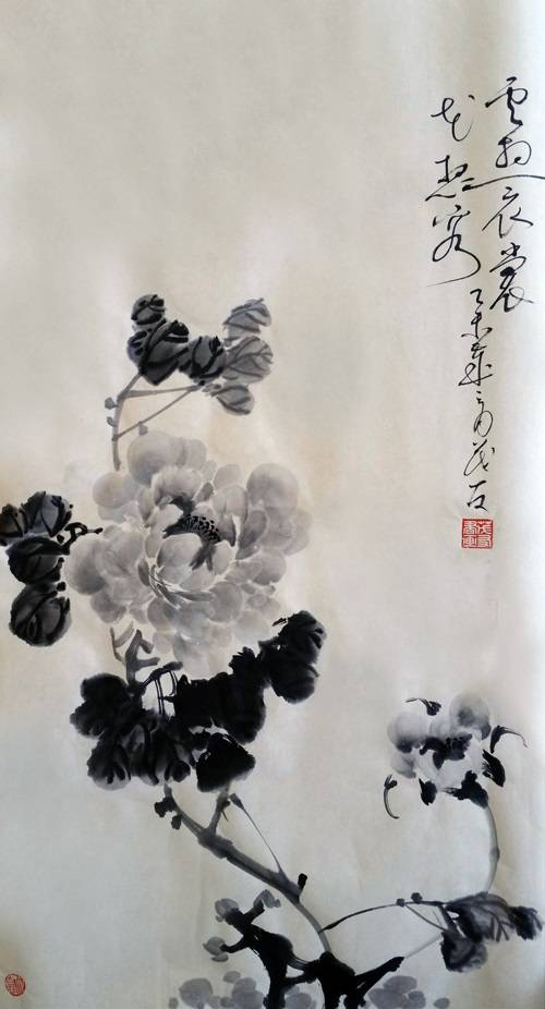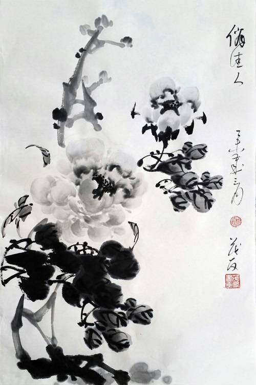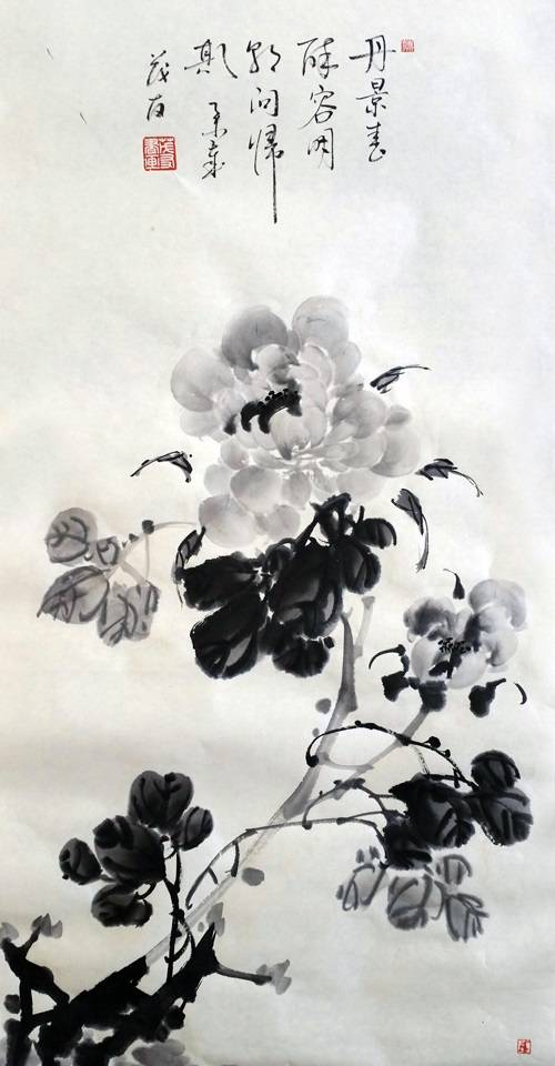 许麟庐水墨牡丹作品
