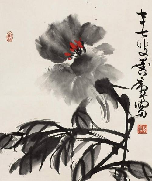 蔡茂友与近代许麟庐水墨牡丹作品对比欣赏
