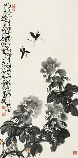近代 许麟庐《蝴蝶牡丹》