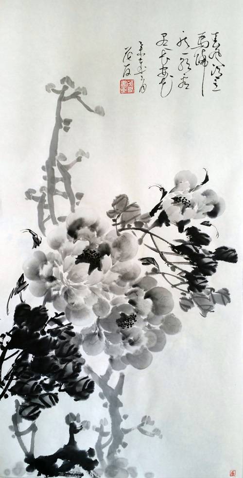 蔡茂友,1963年出生于江西九江瑞昌市,1982年于瑞昌二中考入北京师范大学中文系,书法师从启功先生和秦永龙先生,绘画拜崔如琢先生为师。作品朴茂厚重、大气磅礴、个性鲜明。值得一提的是,蔡茂友在水墨牡丹探索创作中取得新的突破口:他掌握毛笔在极为合适比例的墨汁和清水中渲染成色,画时略一沾带,灵活运笔,一株墨色清雅的牡丹跃然纸上。通过奇妙地利用水墨与宣纸的特性,蔡茂友笔下的牡丹花瓣和叶子有了独一无二的质感。精心布局,力求墨分千层,以水墨的浓淡描绘花的层次变化,墨即是色色即是墨,以达到淡墨轻岚突出意境五彩缤纷的牡丹世界。
