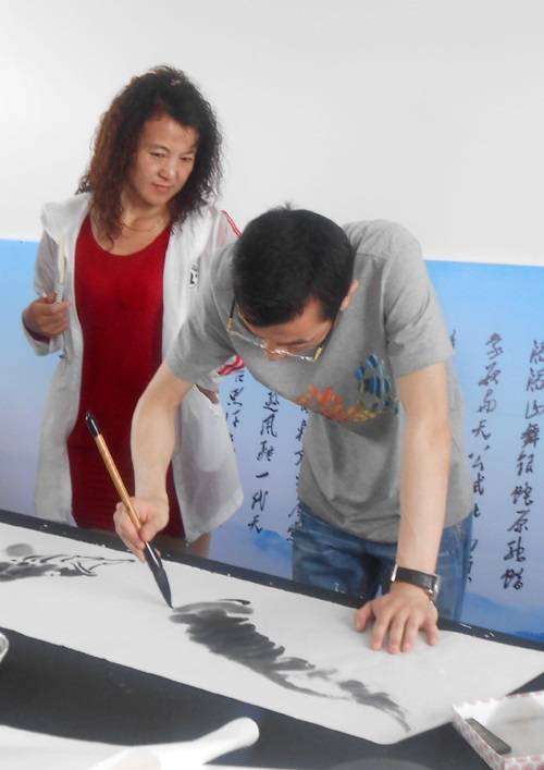 在校长辛宝平的引领下大家走进校园参观,但见校园环境整洁,体育设施齐全;学习氛围浓厚。大家来到了书画教室,校长介绍了近年来学校的发展变化,师生开展书法学习情况。在观看了师生们习练的书法作品后,书协主席郭岩对师生们的书法作品给予了点评。随后,书法志愿者即兴为师生们创作书画作品100余幅。