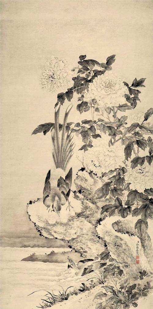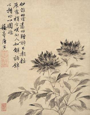 唐伯虎水墨牡丹作品