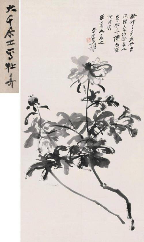 张大千水墨牡丹作品