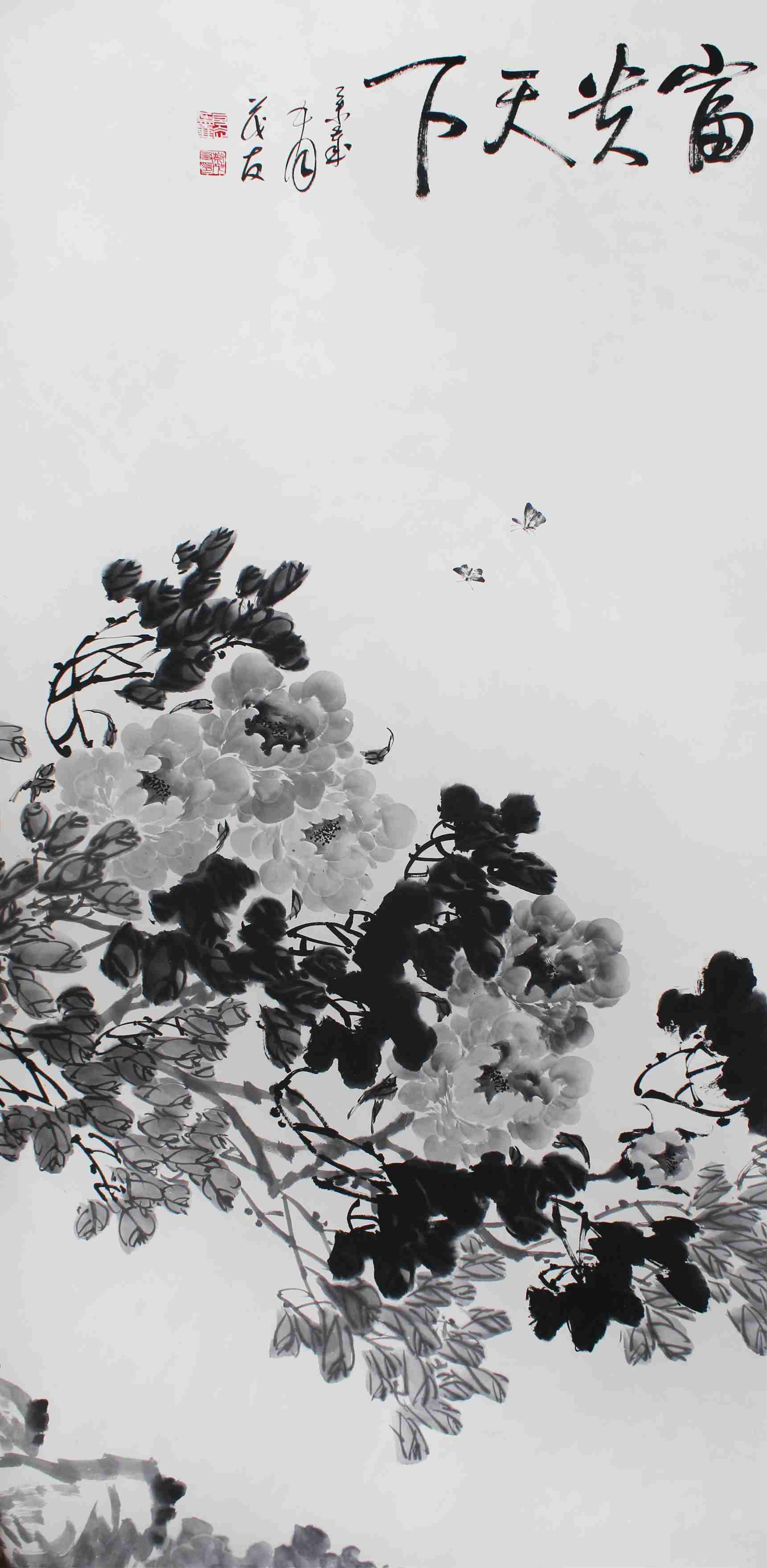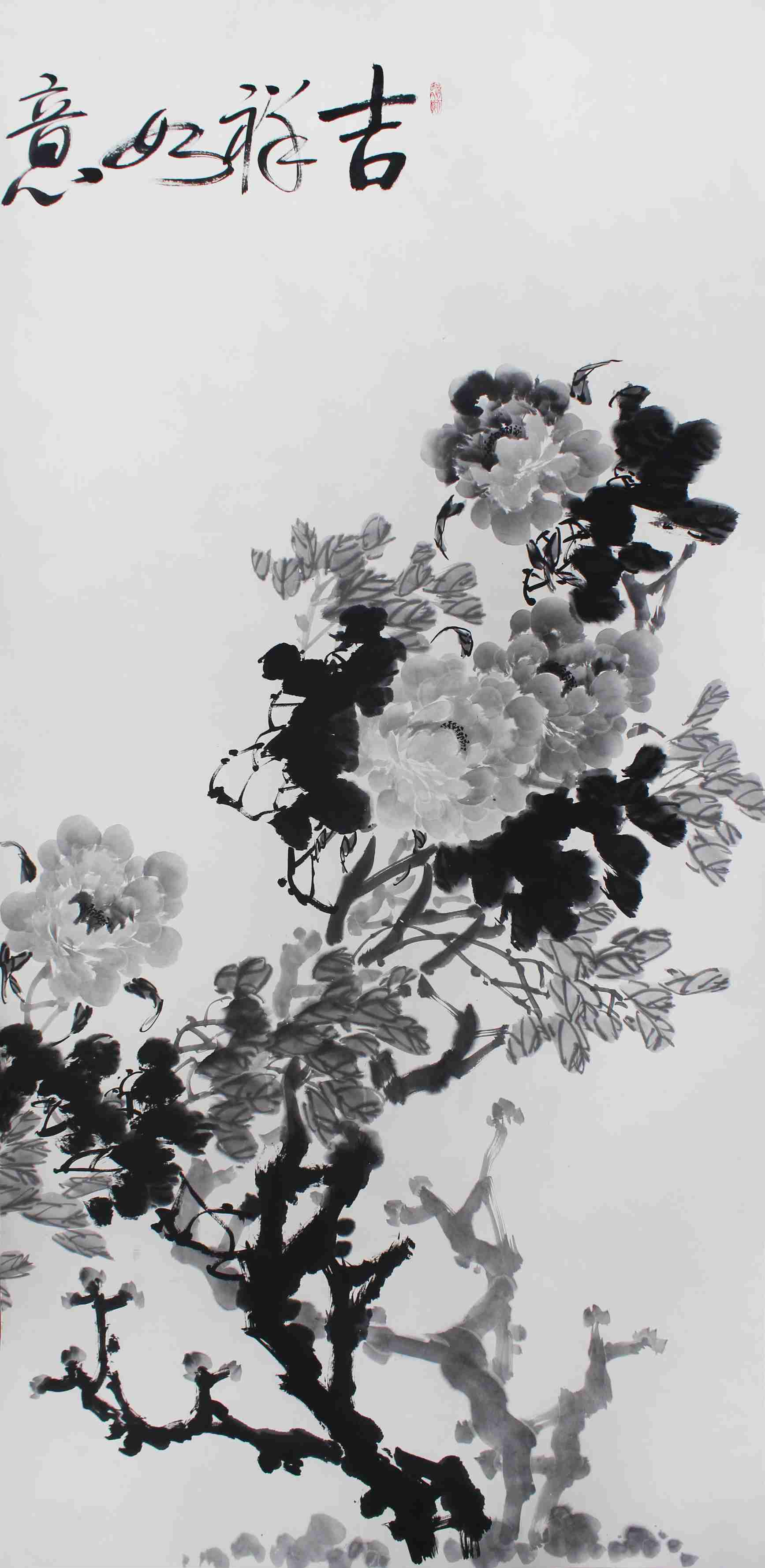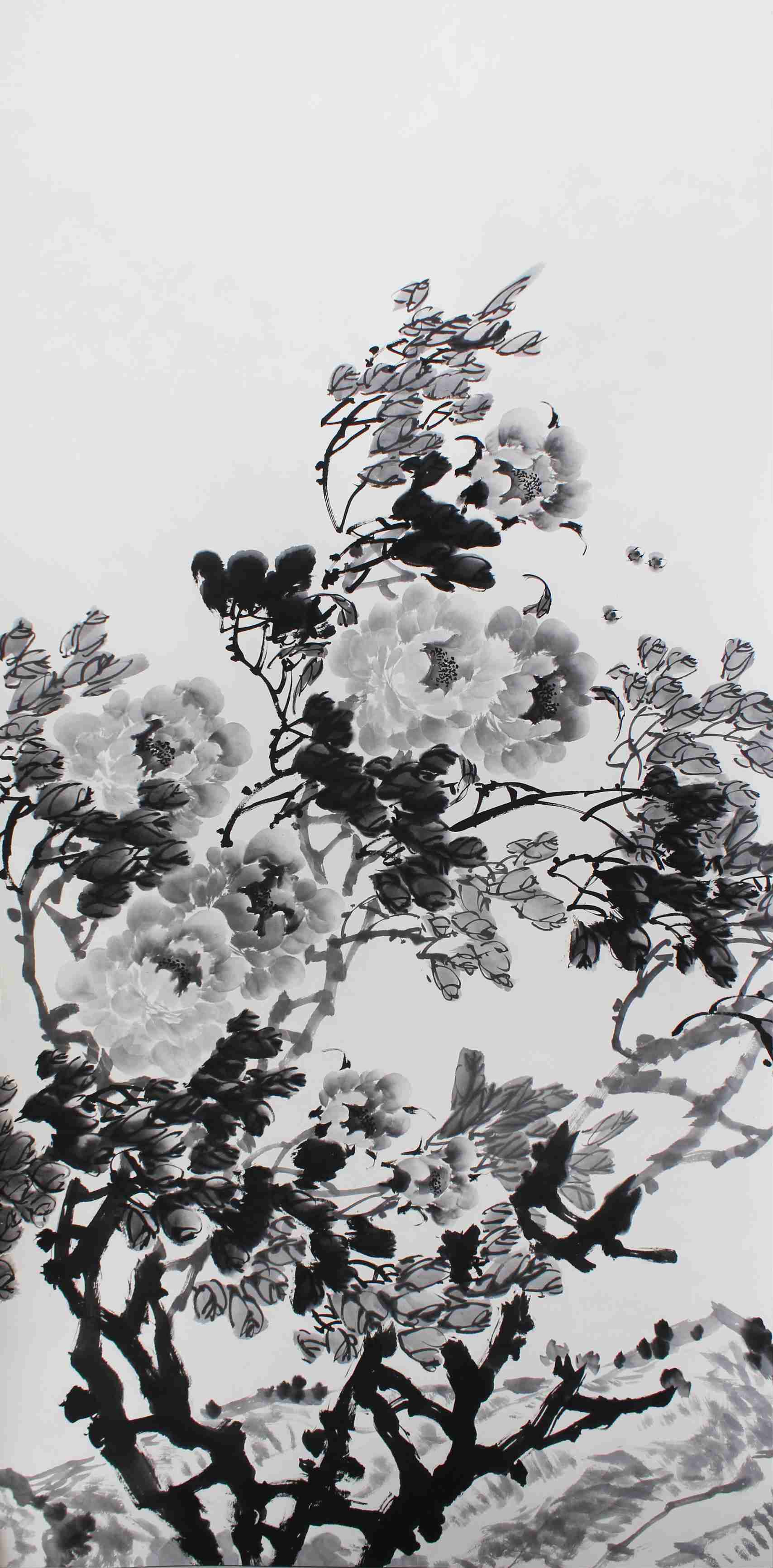 蔡茂友水墨牡丹《吉祥如意 富贵天下》2.8米X1.09米X5