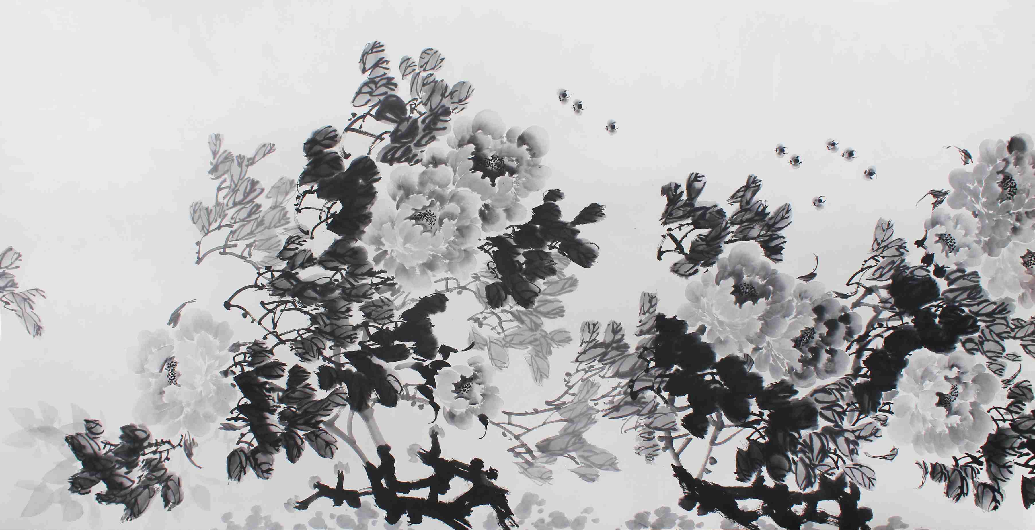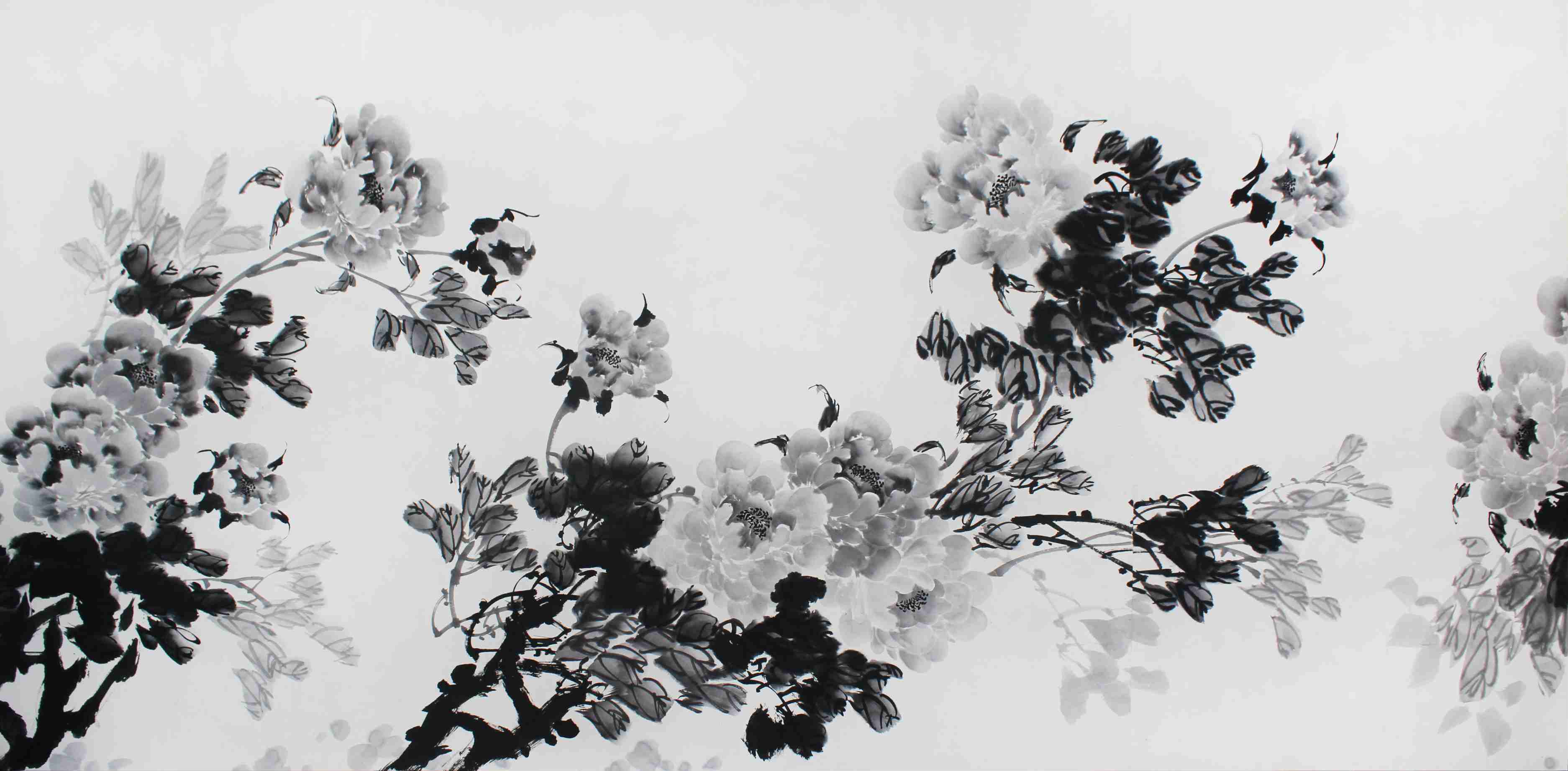 蔡茂友水墨牡丹长卷《青春花海 心灵之约》局部1