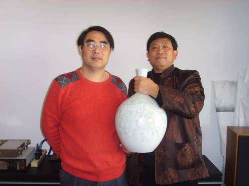 江宏伟教授向书画院院长江绪奎先生赠送他所绘制的瓷器大花瓶