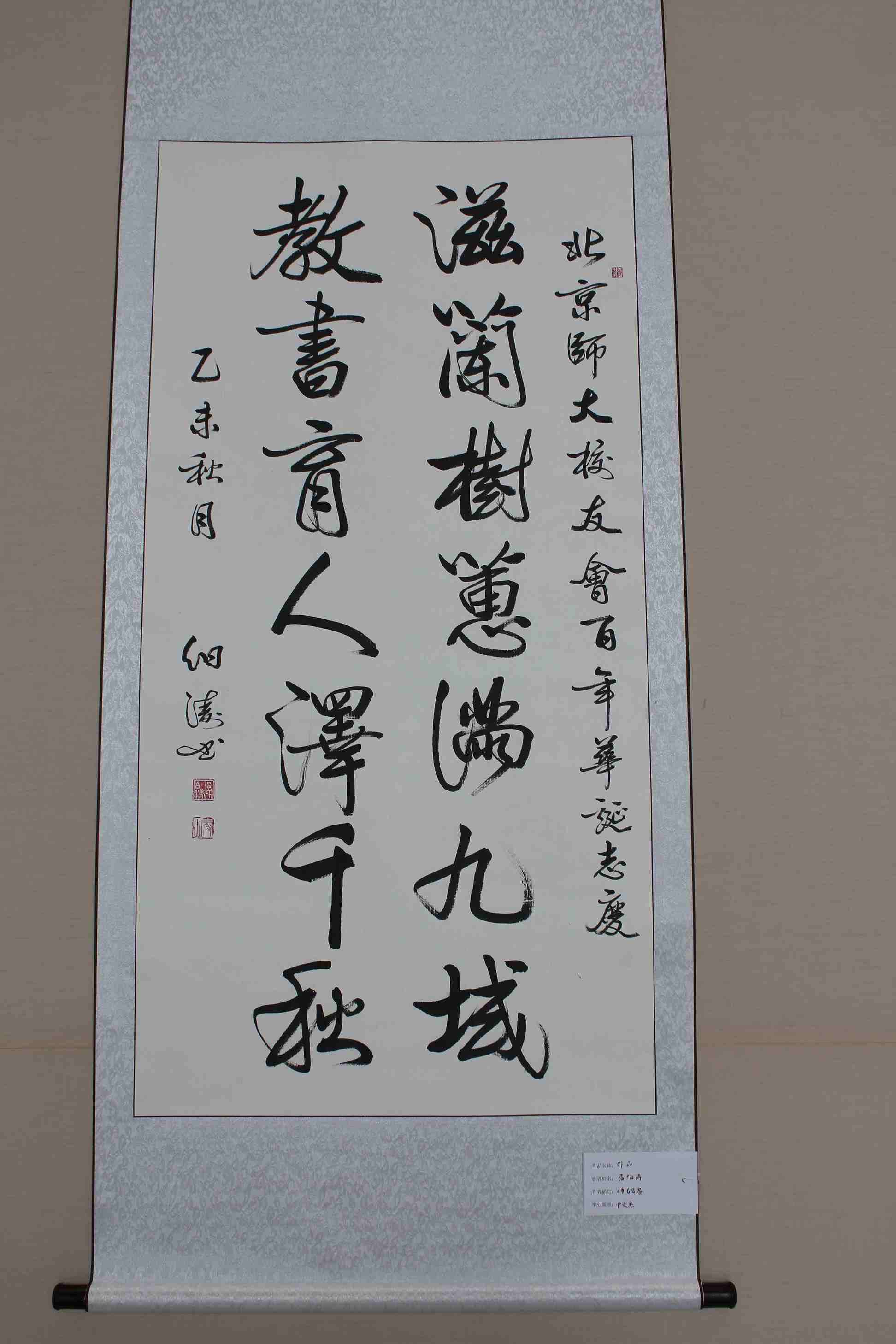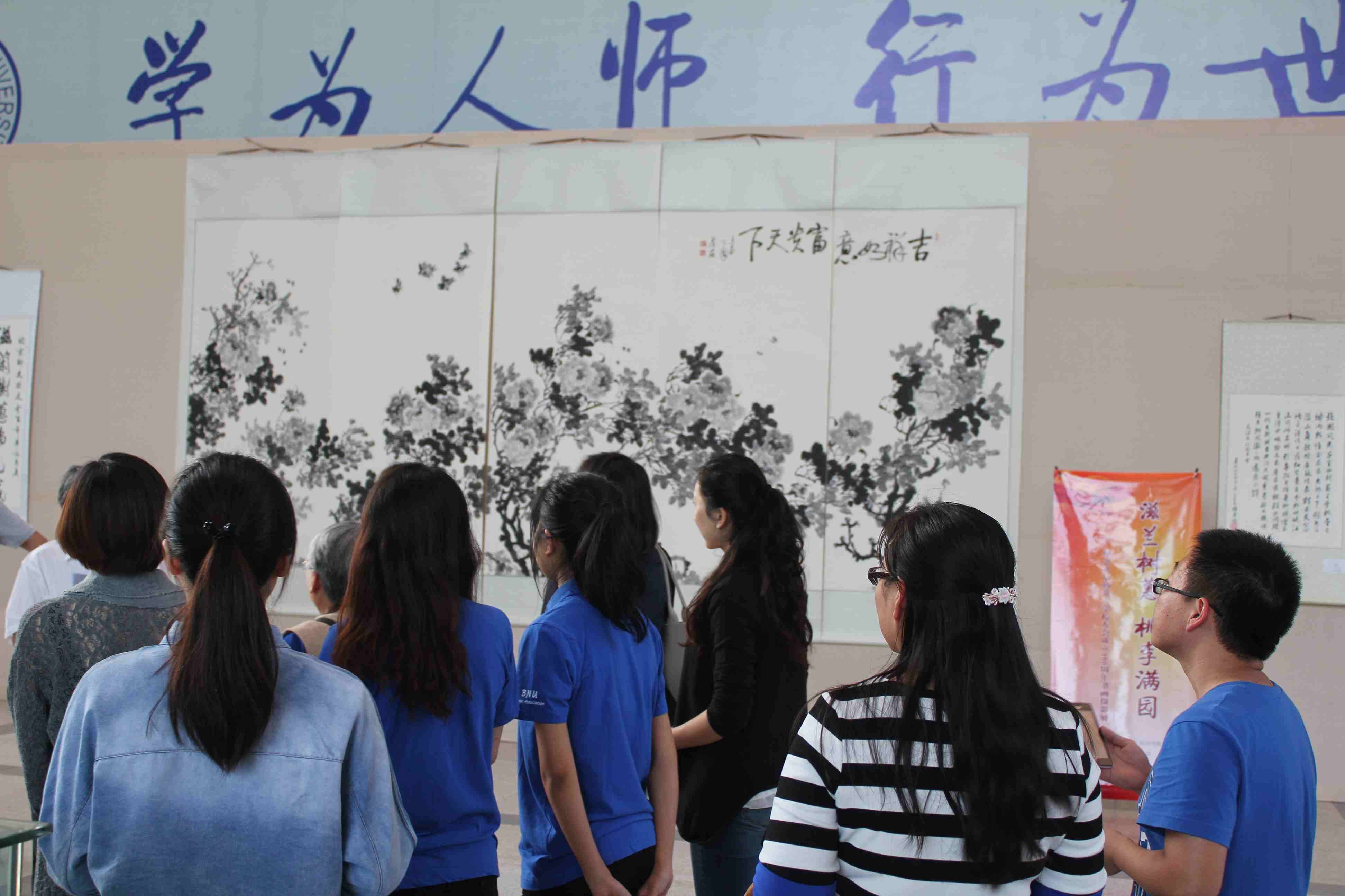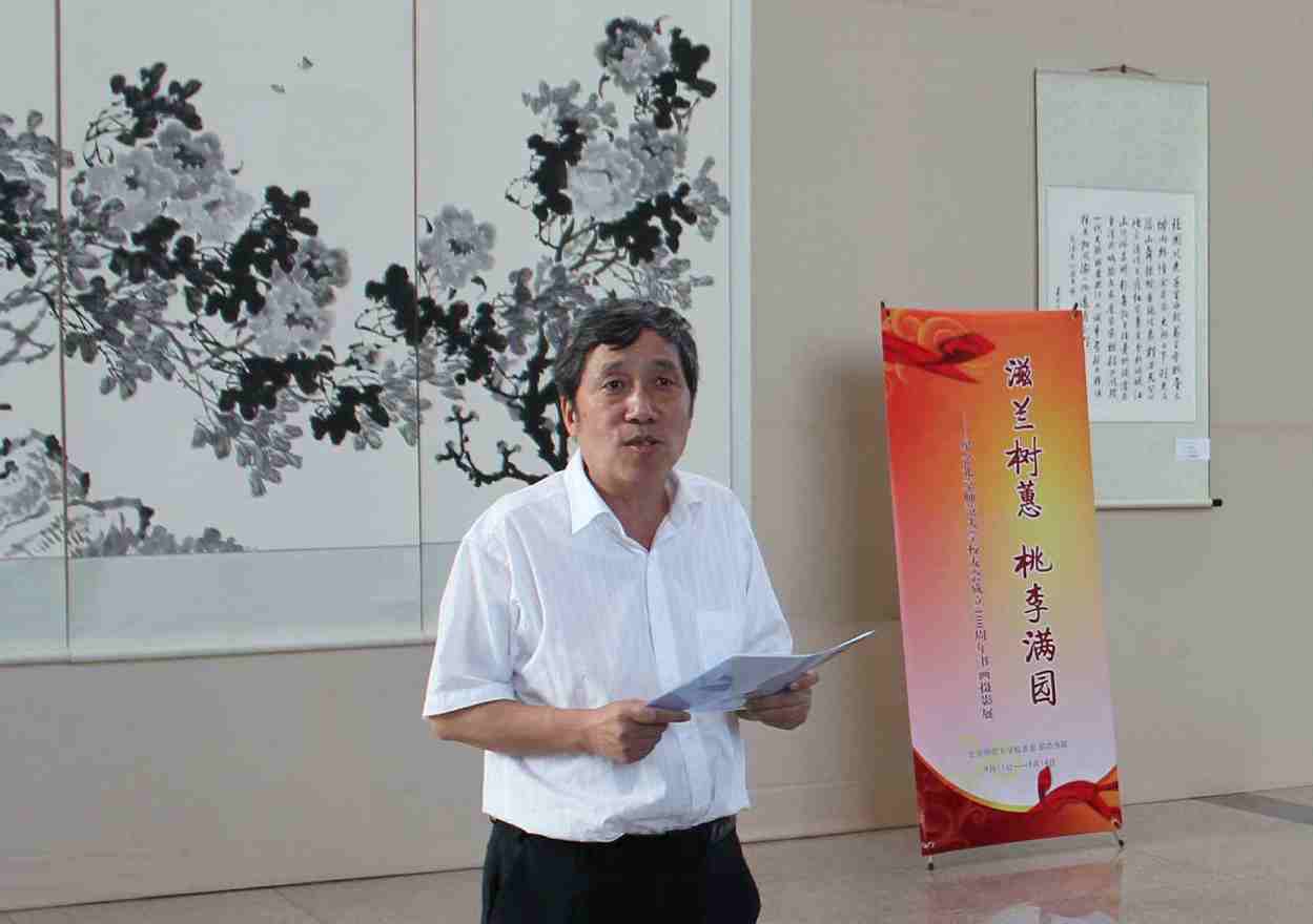 北京师范大学校友会成立于1915年,今年是其百年华诞,此次展览由校友总会和启功书院共同举办,是庆祝百年华诞的系列活动之一。自活动通知发出之日,到目前为止,校友们参加踊跃,共提交书画作品近七十幅,照片百余幅,其中柳斌、吕伯涛、王琳等学长以及部分校友分会专门为校友会百年华诞创作了作品,也有一些校友,如蔡茂友校友拿出了自己的最佳作品为展览添彩。在此,我代表学校向校友们的大力支持表示最衷心的感谢,希望校友们以后能继续关注学校发展,更多地参与学校活动,也希望参观着能在翰墨书香中,感受北师大校友对母校的真挚感情,感受北师大文化的深厚积淀与熏陶,感受我们师大人的风采!愿我们亲爱的母校能如展览主题所示,“滋兰树蕙 桃李满园”,培养更多、更优秀的人才!