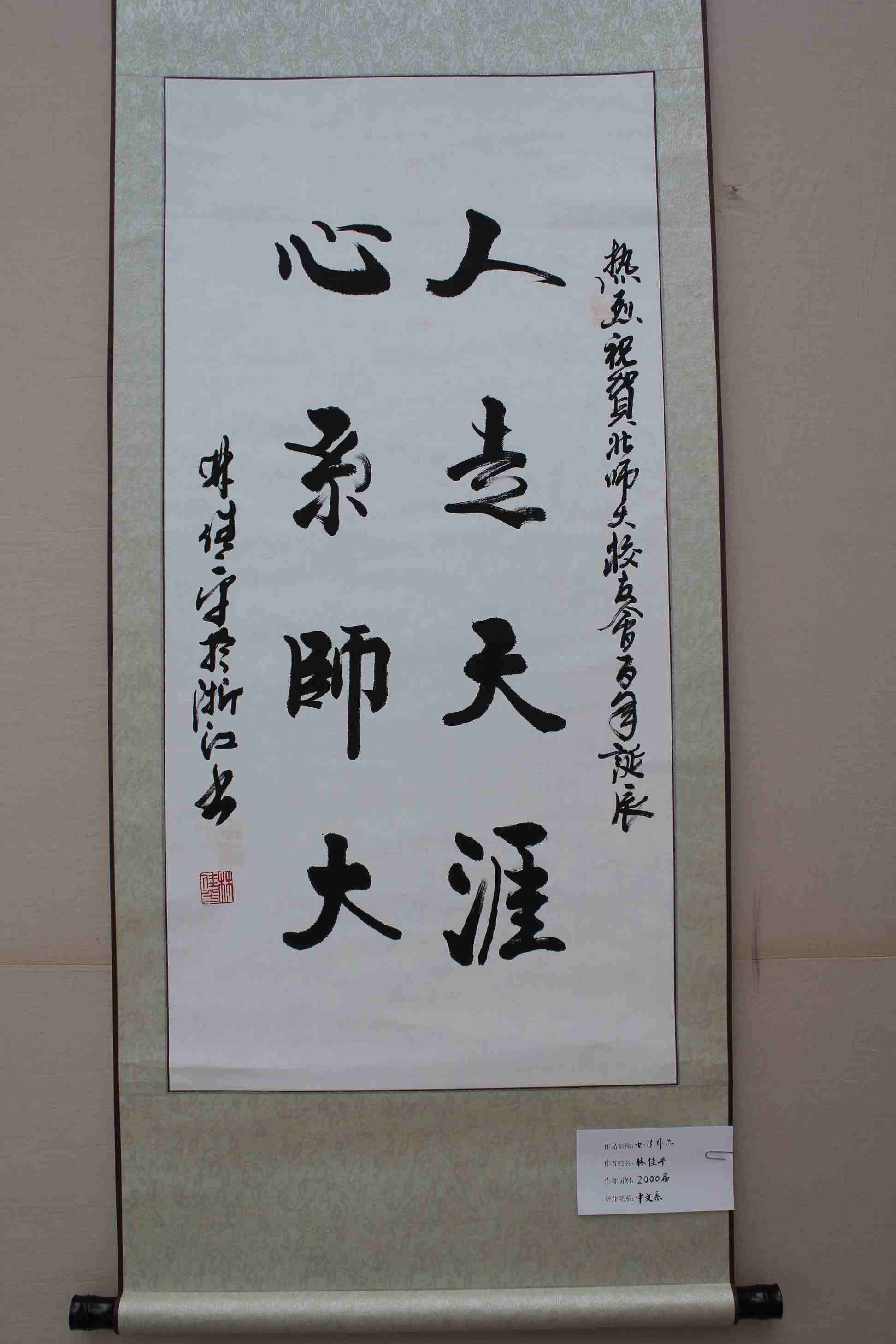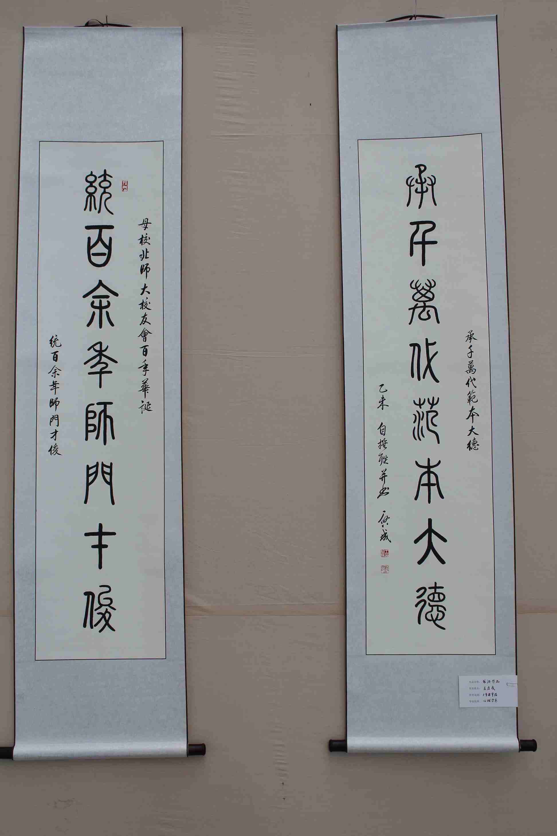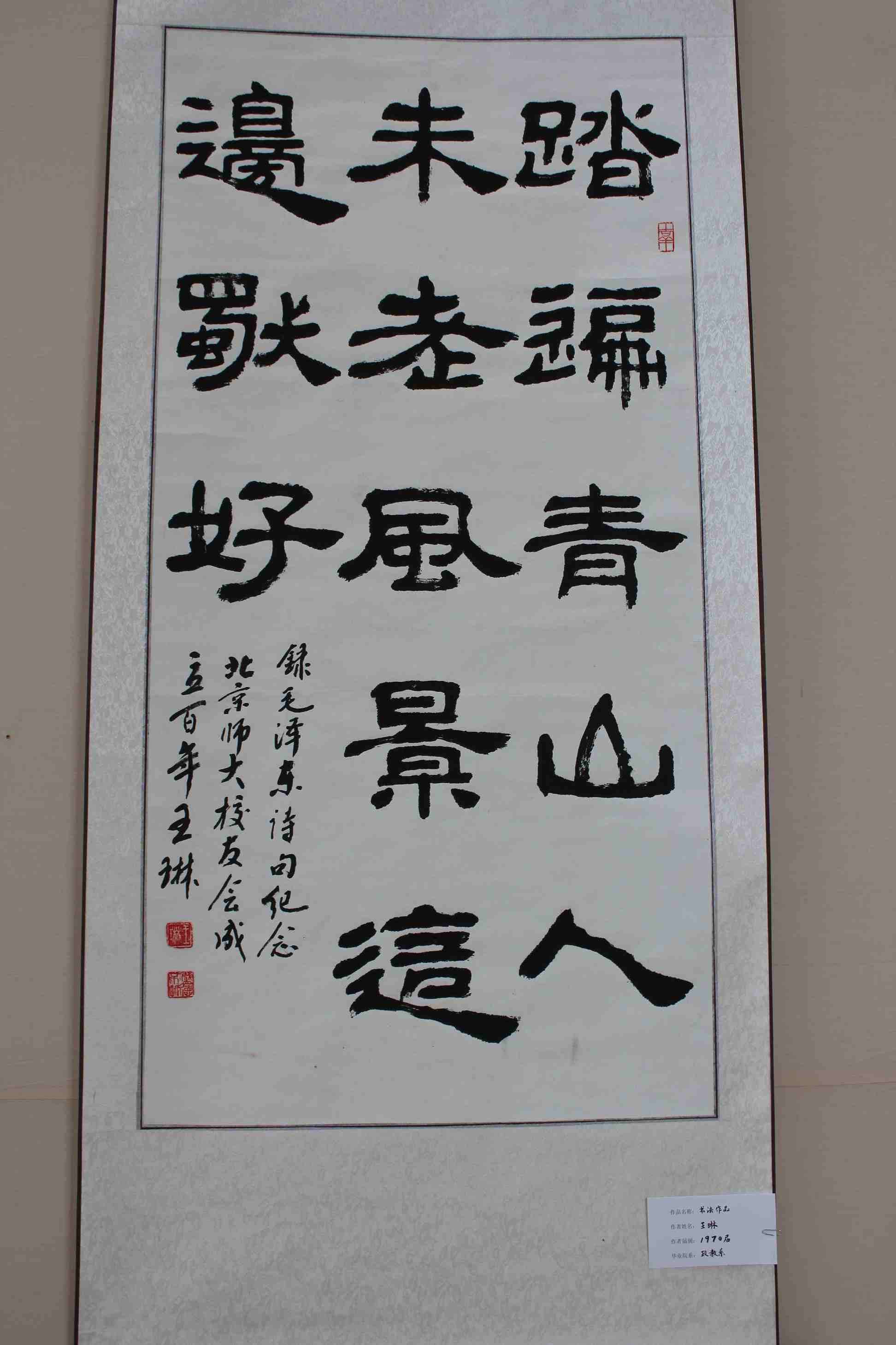 北京师范大学校友会成立于1915年,今年是其百年华诞,此次展览由校友总会和启功书院共同举办,是庆祝百年华诞的系列活动之一。自活动通知发出之日,到目前为止,校友们参加踊跃,共提交书画作品近七十幅,照片百余幅,其中柳斌、吕伯涛、王琳等学长以及部分校友分会专门为校友会百年华诞创作了作品,也有一些校友,如蔡茂友校友拿出了自己的最佳作品为展览添彩。在此,我代表学校向校友们的大力支持表示最衷心的感谢,希望校友们以后能继续关注学校发展,更多地参与学校活动,也希望参观着能在翰墨书香中,感受北师大校友对母校的真挚感情,感受北师大文化的深厚积淀与熏陶,感受我们师大人的风采!愿我们亲爱的母校能如展览主题所示,“滋兰树蕙 桃李满园”,培养更多、更优秀的人才!