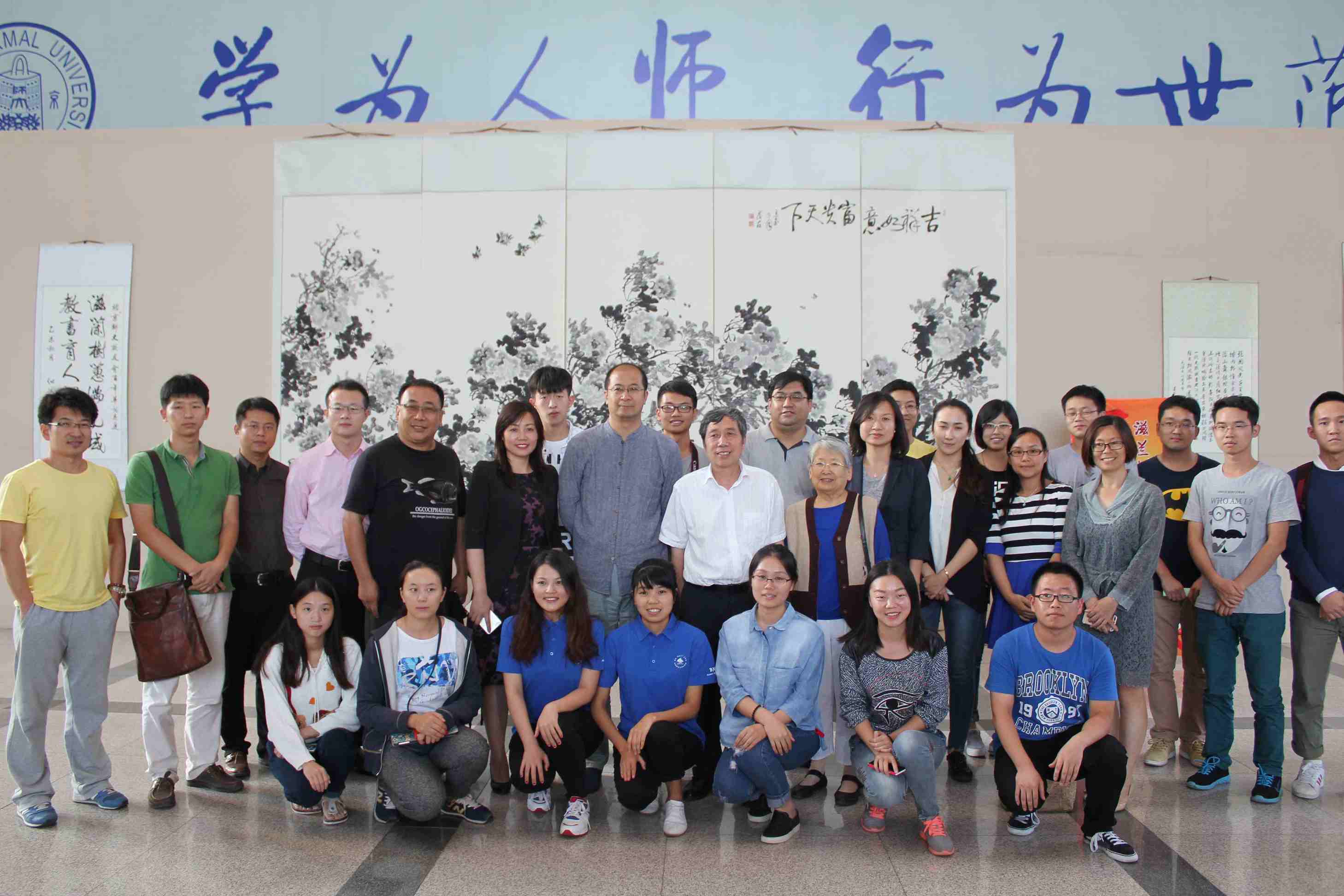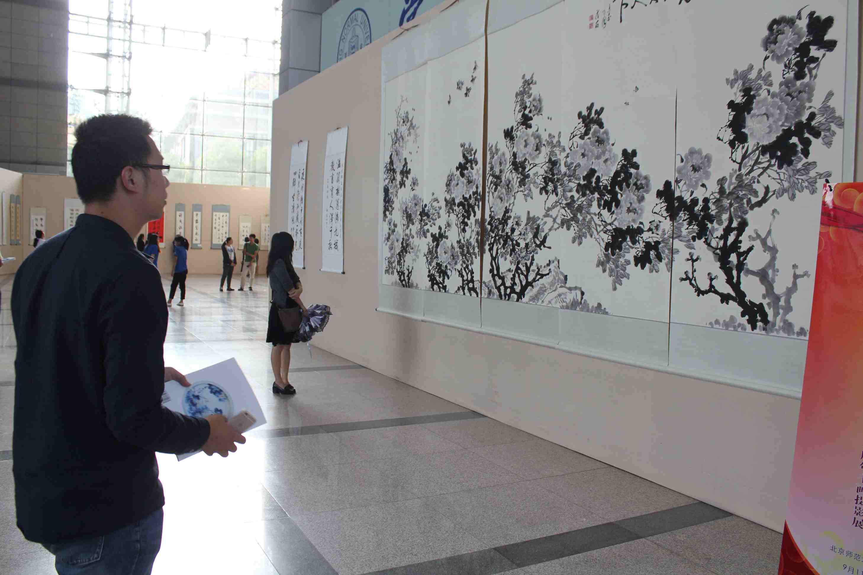 百年校友会,京师校友情。2015年9月11日下午,由北京师范大学校友总会、北京师范大学启功书院主办的“滋兰树蕙 桃李满园——纪念北京师范大学校友会成立100周年书画摄影展”揭幕式在北京师范大学主楼隆重举行。当代书画名家、北京师范大学1986届校友蔡茂友的巨幅水墨牡丹巨作《吉祥如意 富贵天下》(2.8米X1.09米X5)受邀参加了此次书画摄影作品展。