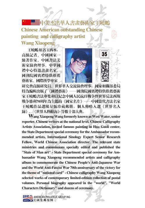恭喜中美杰出华人书画艺术家王晓鹏邮票正式出版发行!