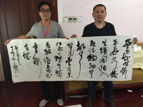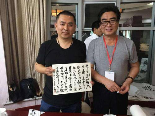 张进旭在北京首发式活动参赛作品,同各地书画名家一起探究书画艺术并亲密合影留念。