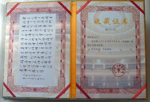 2015年8月,先生的书法作品宋柳永《望海潮》被人民大会堂收藏,这更是对杨先生在书法道路上的一种认可与高度的赞扬!