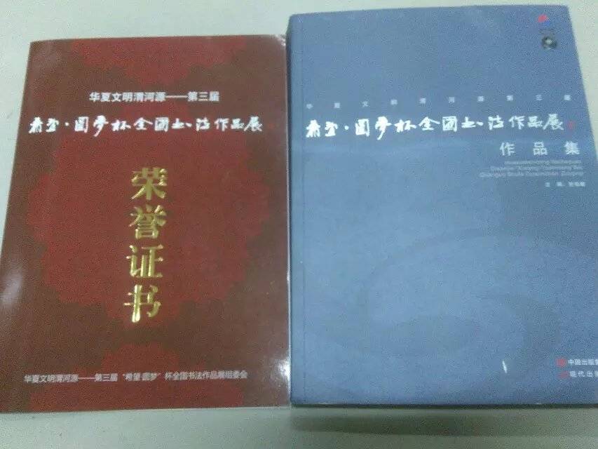 陈春收到第三届希望圆梦杯全国书法展证书荣誉和奖金