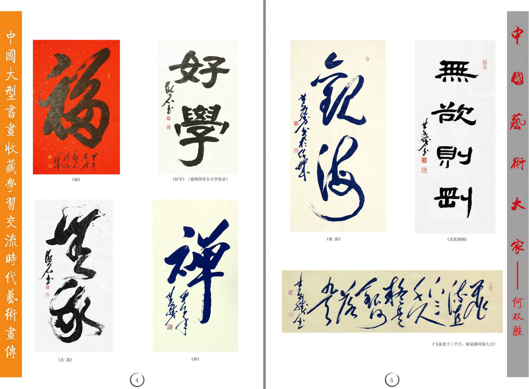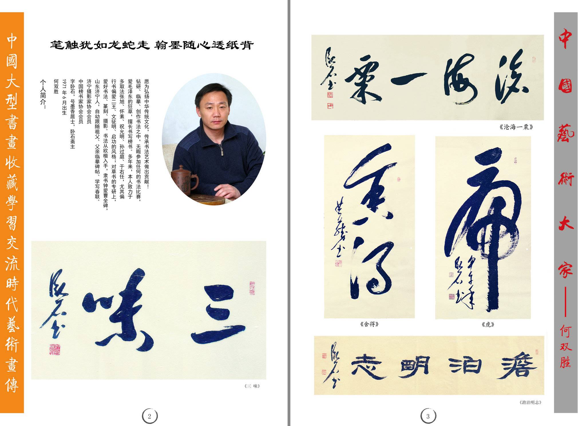 2015年5月,济宁何双胜书法作品特邀编入有中国书协、美协、中国书画家协会共同批复、有欧阳中石、刘大为担任顾问、有人民美术出版社出版的一部大型画传《中国艺术大家》。