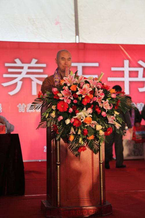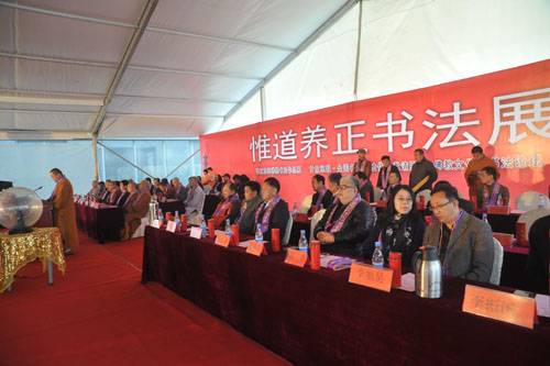 在开幕式上枣庄市佛教协会副会长、市中区佛教协会会长、枣庄甘泉寺住持惟正法师致欢迎词。山东省佛教协会副会长弘庵法师给与了高度评价。为我们下一步的佛教文化事业指明了方向,鼓舞了干劲。山东省书协副主席燕守谷先生的讲话。文化需要进步,佛教需要发展,要互相融合。更离不开各级领导、各部门、各团体以及社会各界的大力支持。我们书画界、宗教界将进一步密切合作,携手共进,努力奋斗,为继承和发扬中华民族优秀的传统文化贡献力量。