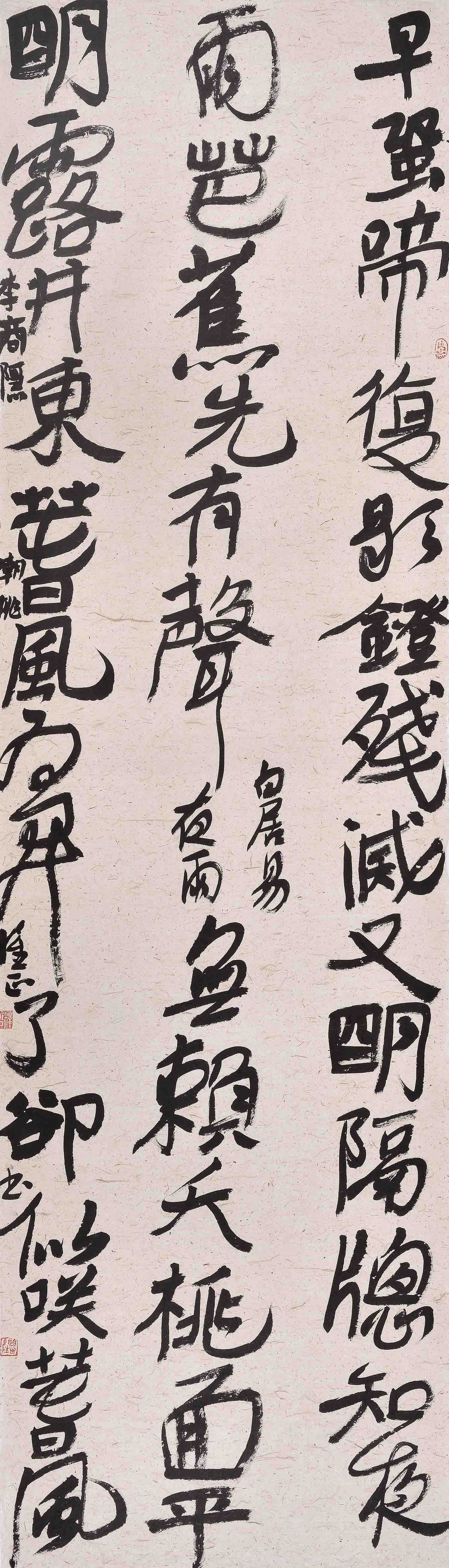可惜的是,业已开启的书法真谛之门很快又被关上。杨凝式尚且还知道,“我意便是我法,我心便是我度”。到了宋人那里,这种绝对肯定心性,直指心源,见心见性式的境界就在强大的儒家思想影响下变成了对浑沌不清的“意”的追求。宋以后,元陈绎曾、清周星莲等人也曾偶然论及书法的真谛在于抒情写意,明代的徐渭等人甚至还窥见了亚栖等人的妙处,自得其乐地挥洒、发泄了一阵“胸中之气”。但千余年间,对唐末书家的创作及其意义始终没有人引起足够重视,以至近千年来的书法总是围绕着儒家入世思想,功利观念、中庸之道在道德人品、规矩法度和尚意、尚态上盘桓,不敢大胆地破法,不敢理直气壮地承认心性在书法创作中的至尊地位。直到当今,我们的书法理论家,才在西方美学的帮助下,重新发现了“抒情写意是书法艺术的最高境界”这个秘密。