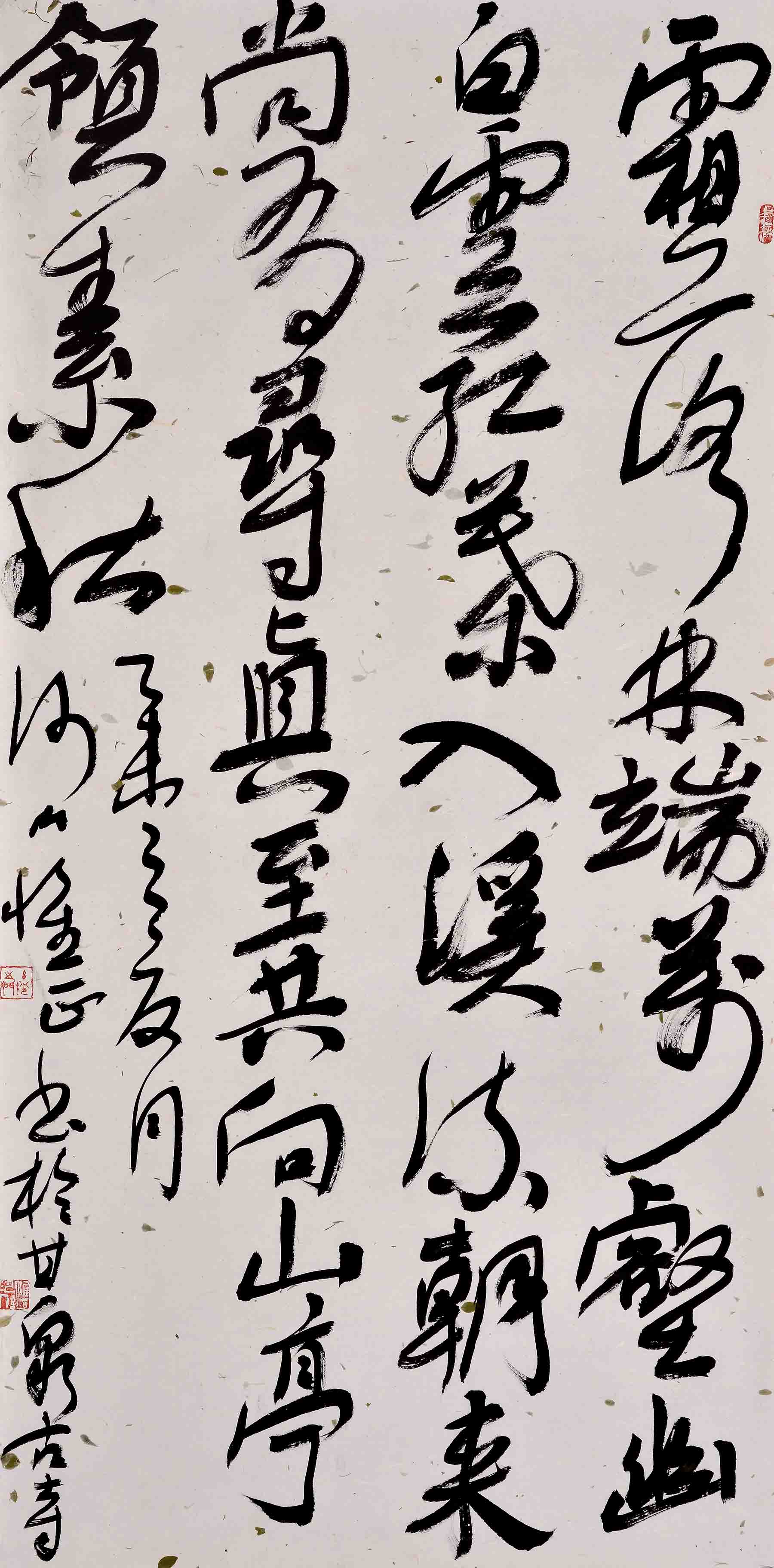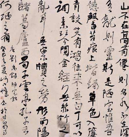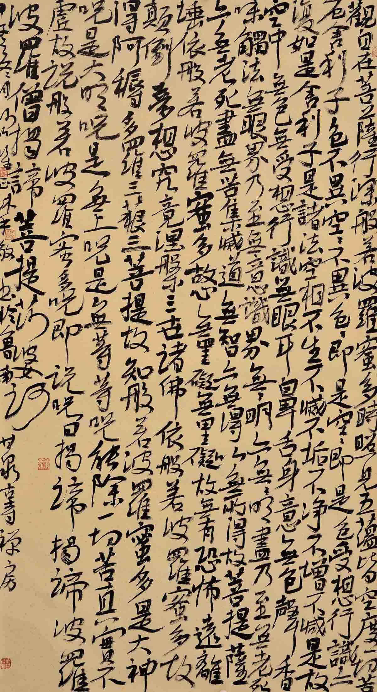 以上是佛教思想以丰富书法艺术创作的几个比较明显的方面,概括起来说,唐末的狂草是在书法艺术精神方面融铸了佛教思想,其余则主要是在艺术形象创作手法上表现了佛教思想的某一部分,使书法呈现与之相适应的特色。佛教思想博大精深,这种融铸和借鉴是大有潜力可挖的。