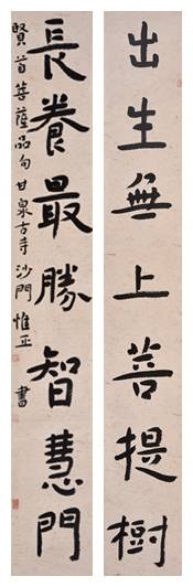 金秋十月,硕果飘香。枣庄甘泉寺惟正法师,在悟道参禅、弘法布教的同时,闲暇之余研究创作书法作品,并取得了丰硕而可喜的成果。经过长时间的努力筹备,“惟正养道”书法展于2015年11月7日在枣庄市清和美术馆庄严开幕!展览时间为公历2015年11月7日——2015年11月14日。甘泉楹联—全国名家书法作品展为主题的全国名家创作甘泉寺楹联作品展,将佛教楹联、禅语心得与当代书法艺术作了集中展示。“惟正禅墨书法展”以一方墨砚研习书法,践行佛法的赤子之心,向书法界、佛教界乞请赐教。