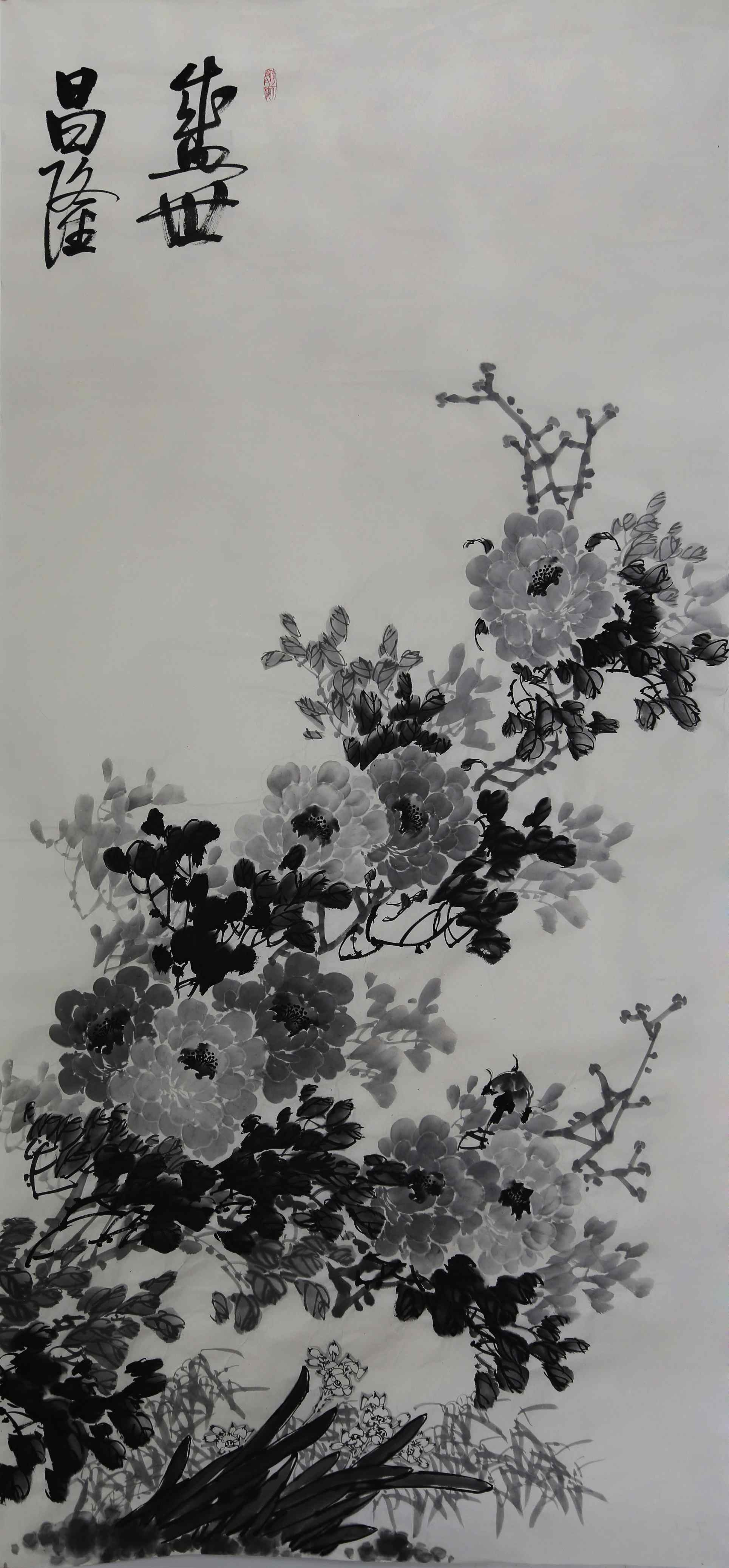 蔡茂友水墨牡丹 《盛世昌隆 春风如梦》七条屏1.1米X2.3米X7-(7幅)