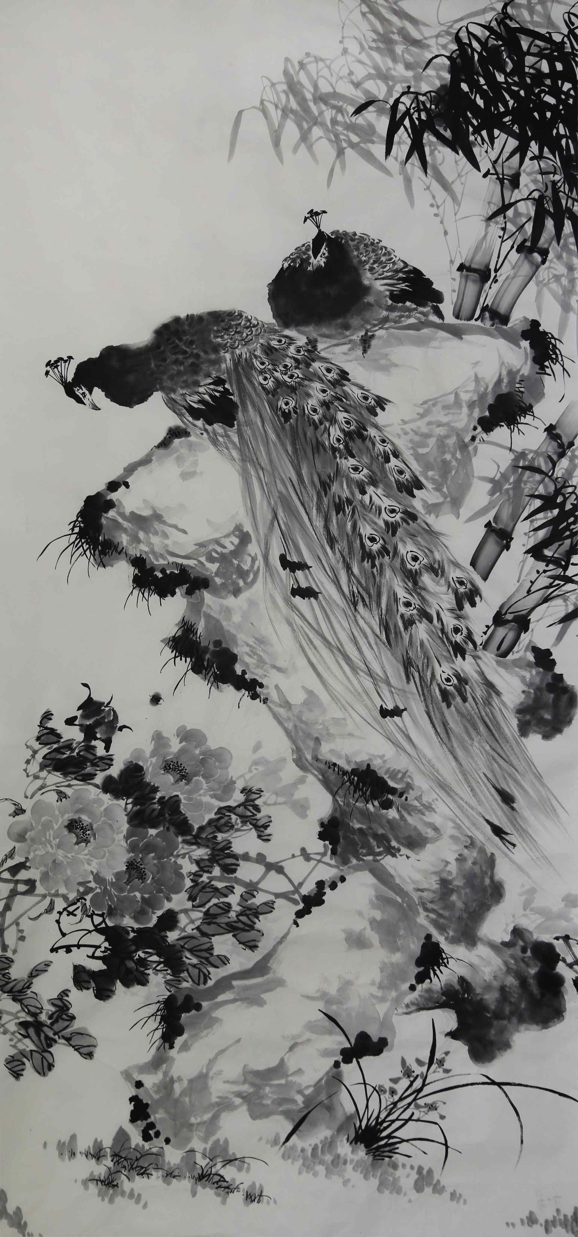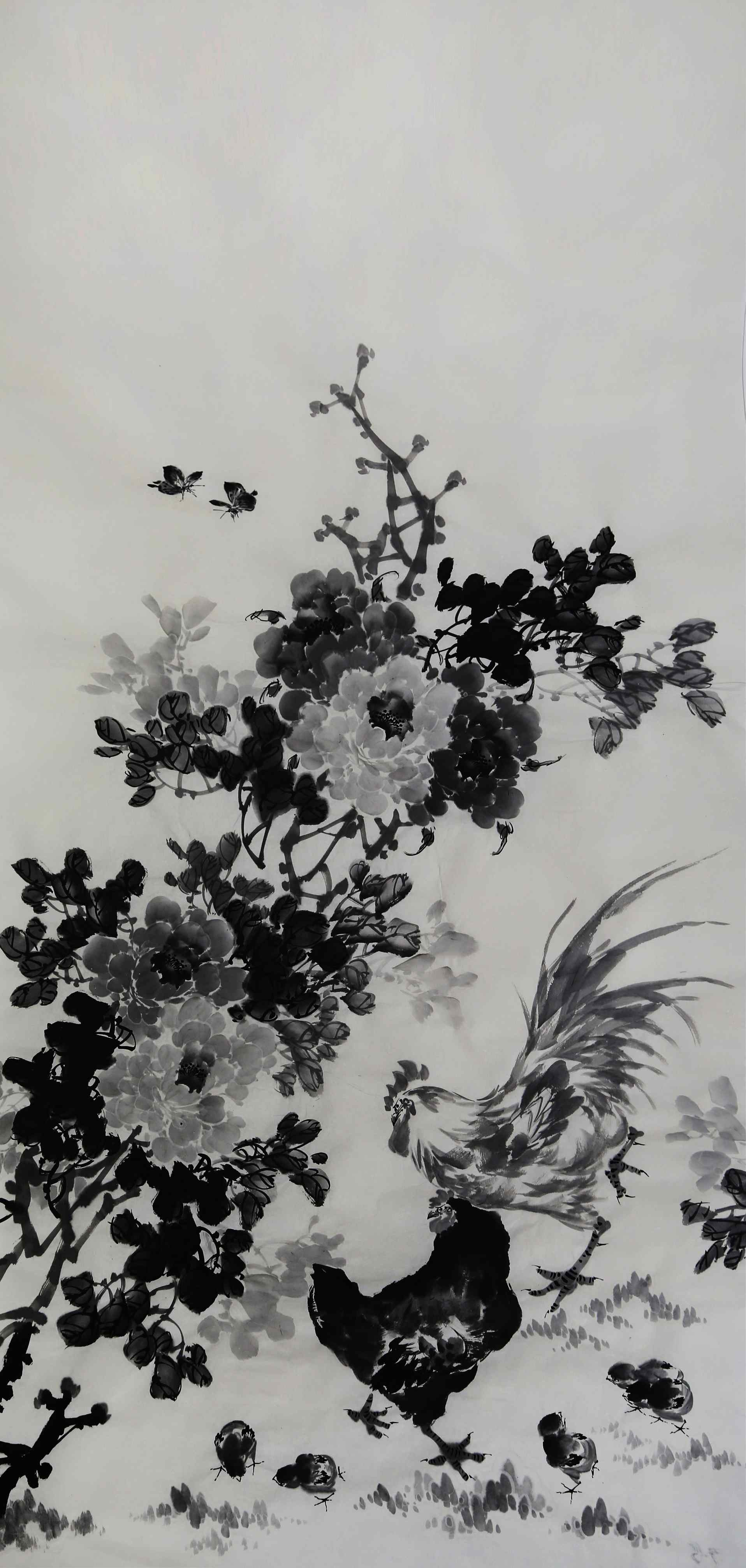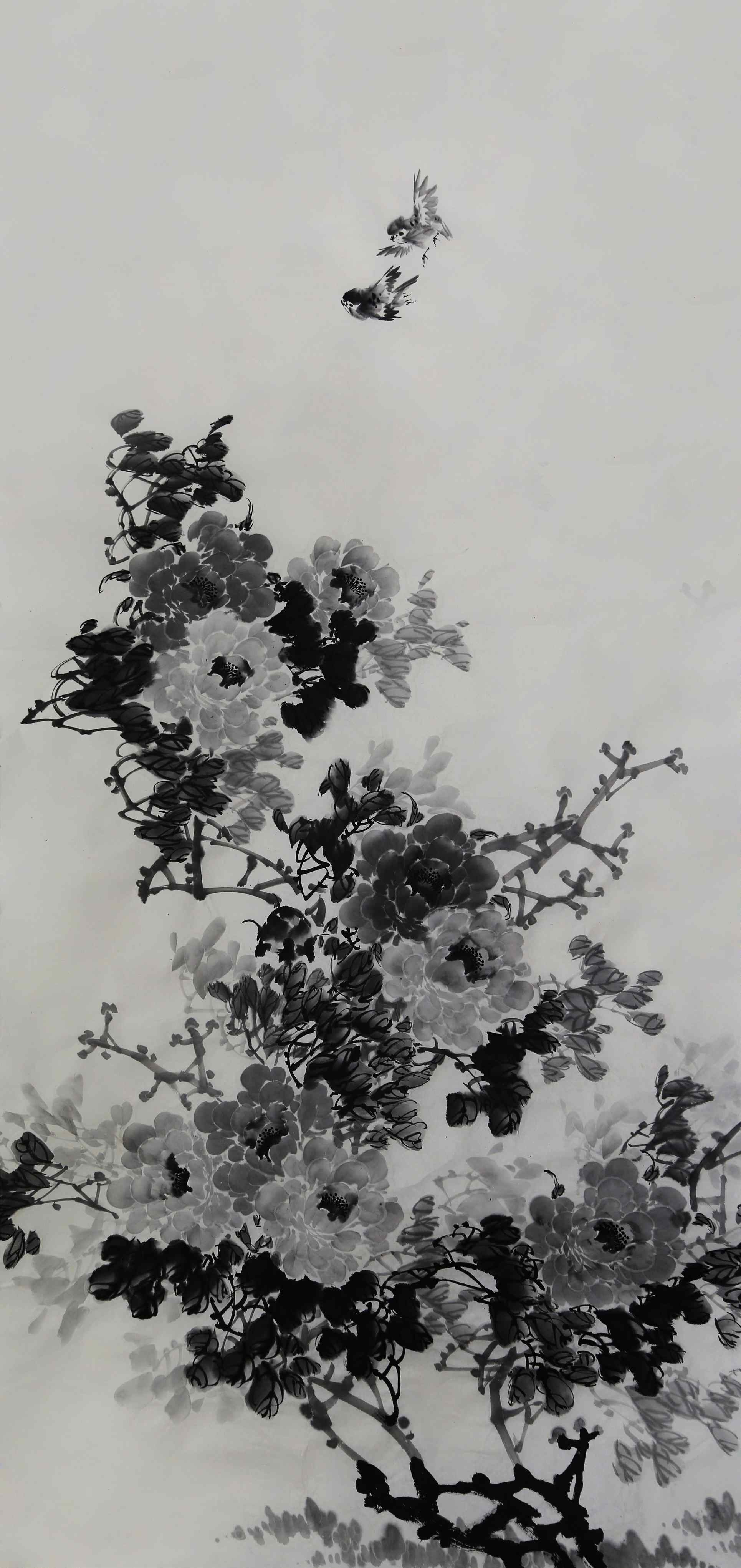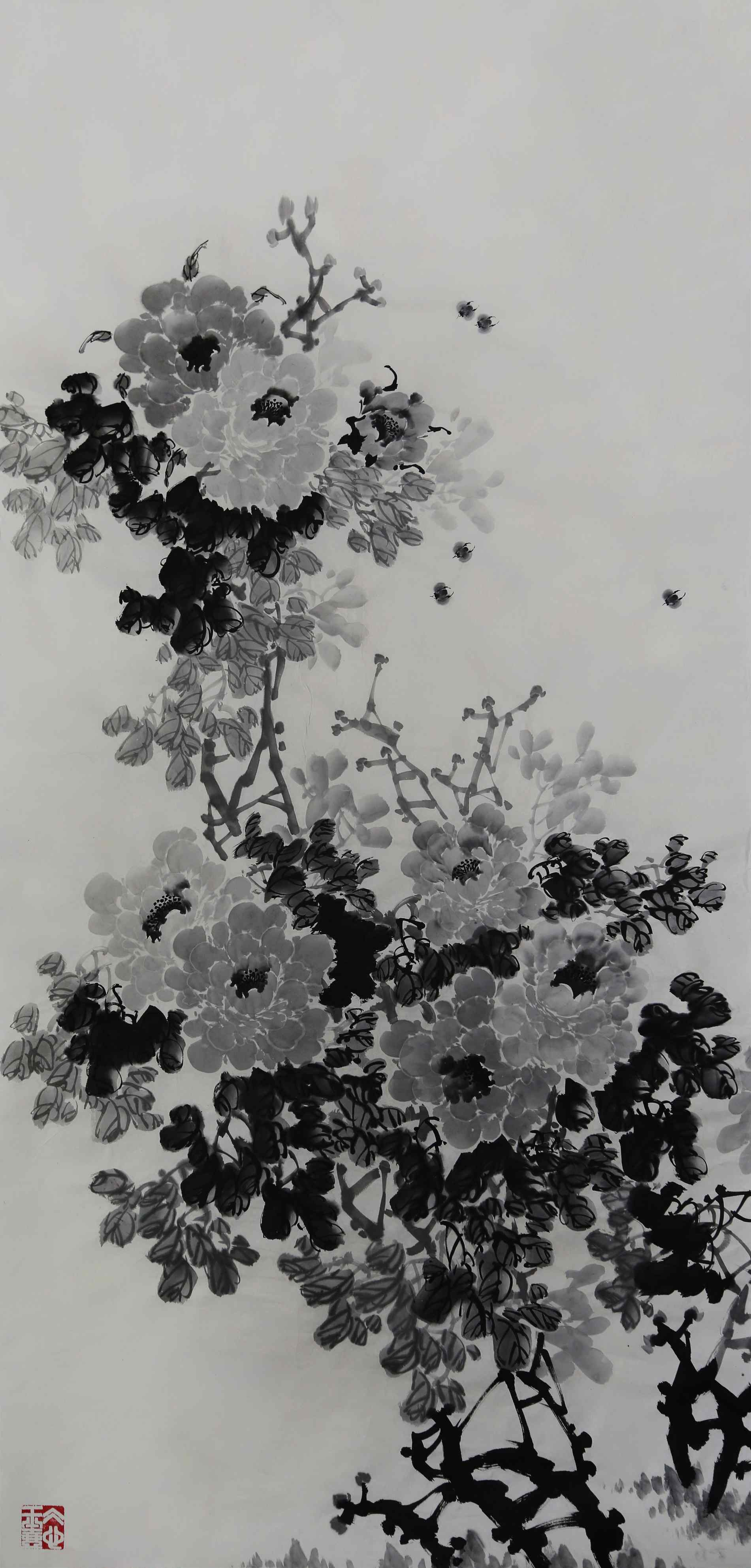 具体而言,蔡茂友的水墨牡丹不仅给人以形象美感,更重要的是,他往往在水墨牡丹中寄托着自己的思想情绪。他善于描绘牡丹与一个季节里面的世界的丰富多彩和活泼生气,又精于表现画家的心灵感受和动人想象。他注重写生,尤善于描绘大自然中的小生命,如蝴蝶、蜜蜂、孔雀、八哥、麻雀等,丰富了牡丹的生长环境气氛,栩栩如生,引人喜爱。再到从墨分五色到墨分千层,主要是立体感,明暗变化。水润冰心,主要是牡丹的质感,水色鲜嫩欲滴,更有一种情绪,一种愉悦感,一种积极向上的情绪,使观者将身心锻炼寓于艺术娱乐活动之中。我们从不同的角度观察蔡茂友的水墨牡丹作品,就会产生不同的鉴赏效应,引起不同的审美感受。故观者要排除杂念,把意念全部倾注于作品之中,从而达到陶冶性情的效果。