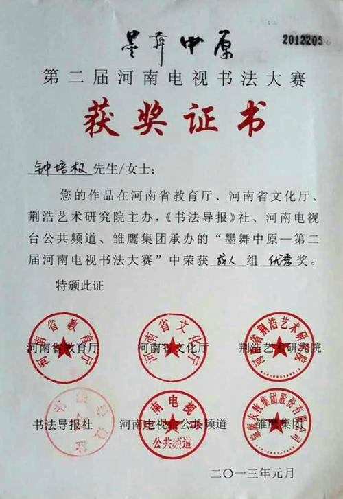 钟培权证书