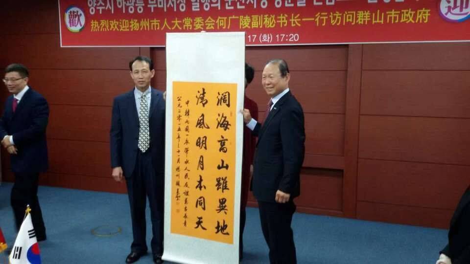 (学术交流团向庆州市政府赠送作品,承赠人为庆州市议会副议长徐镐大)