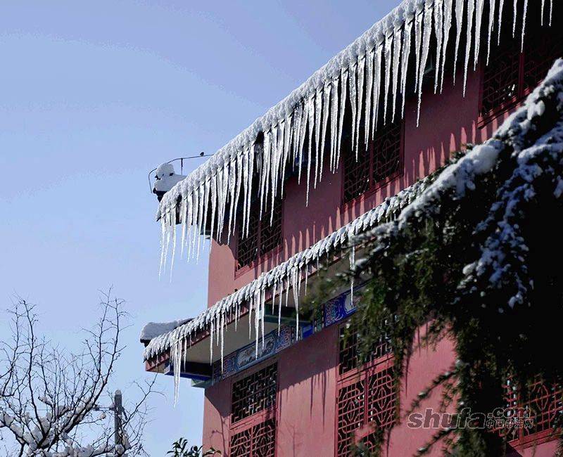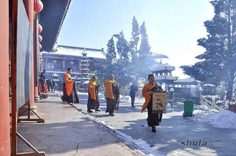 瑞雪兆丰年,甘泉琉璃光.暨甘泉禅寺住持惟正法师成功举办“惟道养正”书法展,又喜逢三十年一遇2015天降初雪,忽如一夜春风来,千树万树梨花开;远处白雪皑皑,山舞银蛇,一片白茫。整个甘泉禅寺好像进入了冰晶玉砌的琉璃世界。