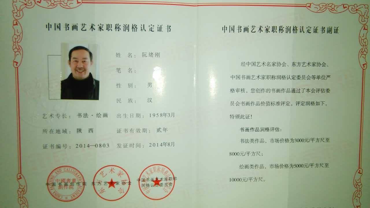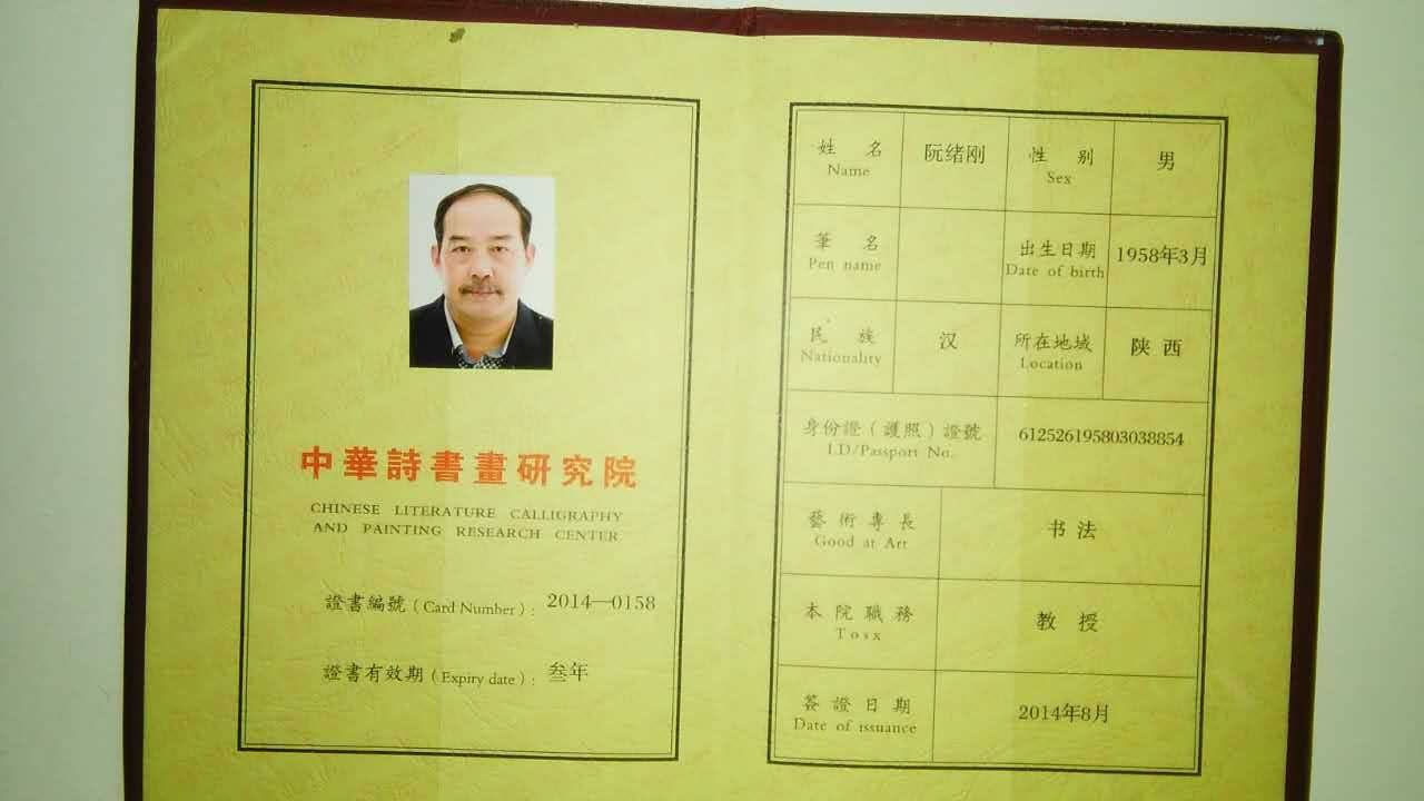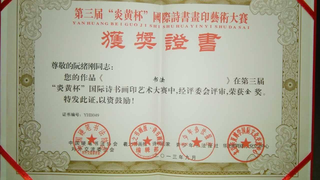 阮绪刚获奖证书