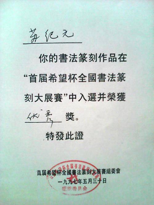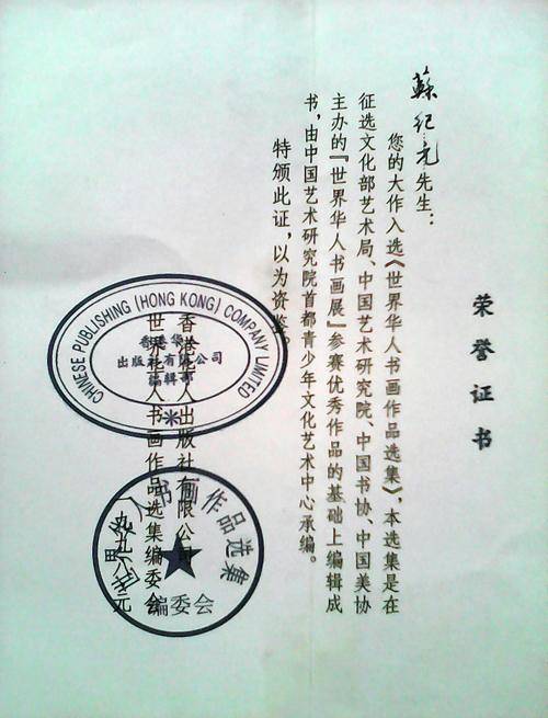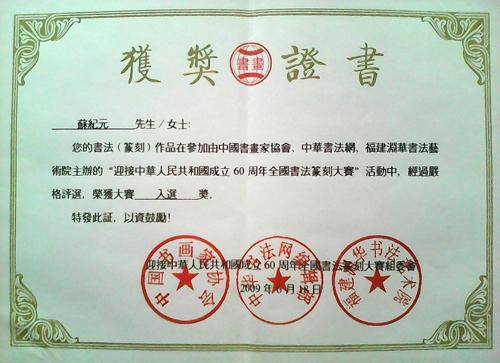 苏纪元证书
