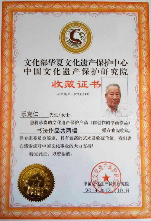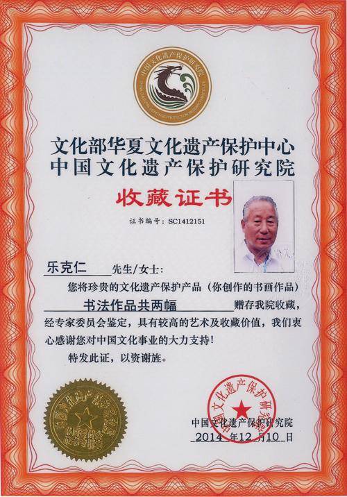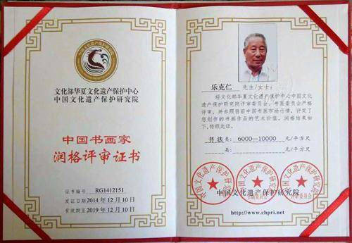 乐克仁证书