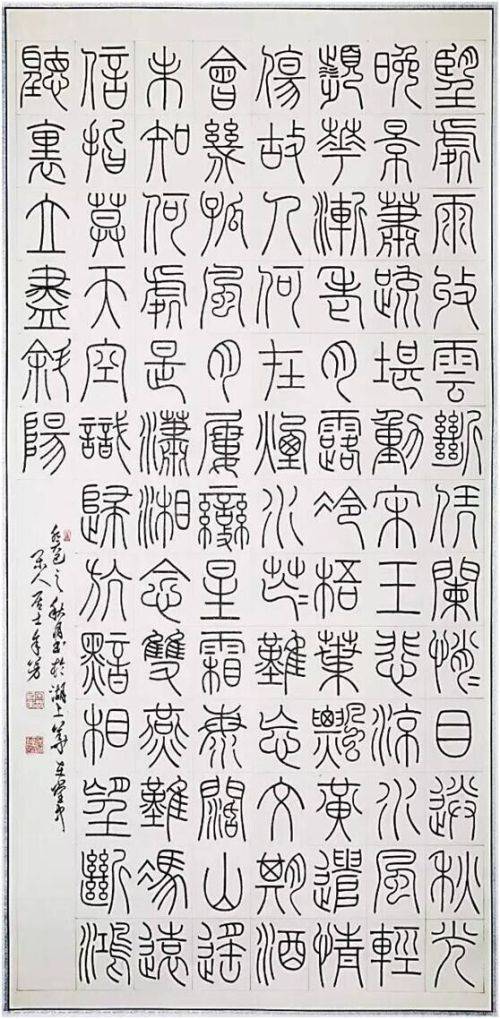 十年漫漫,步履维艰,余芳女史深明基础单薄,不气馁,不冒进,师长舍短,明理进技,创作与研究共舞,艺品与人品兼修,夯基筑础,坚体实身。焚膏继晷,兀兀穷年,持之以恒,乃有所成。其书法出入汉唐,优游明清,四体兼长,尤工小篆。偶涉工笔花鸟,亦清新可人,颇得趣味。细而言之,大篆得散氏盘、毛公鼎之古韵,隶书合《曹全》、《张迁》之朴拙,草书糅《书谱》、孟津之精妙,小篆法完白、熙载之端庄浑厚。错落有致,婉通婀娜。