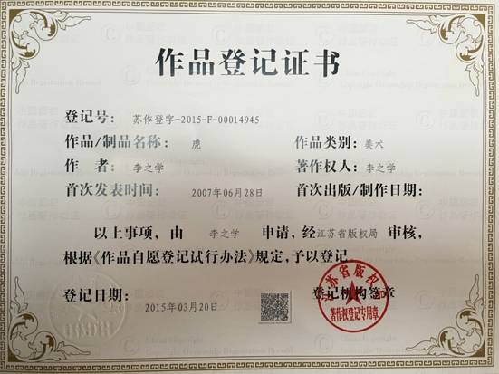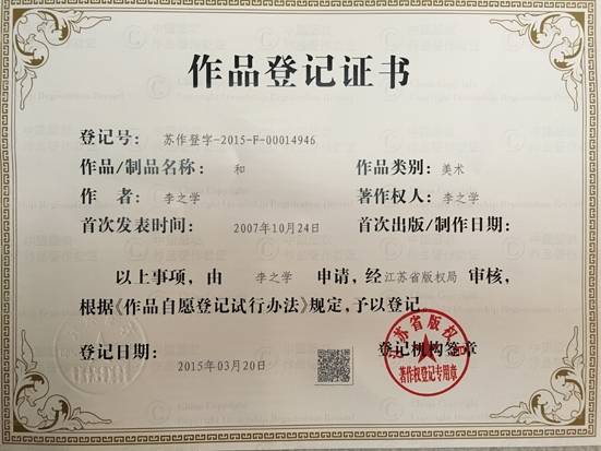 李之学象形字画《虎》,《和》等原创作品版权登记