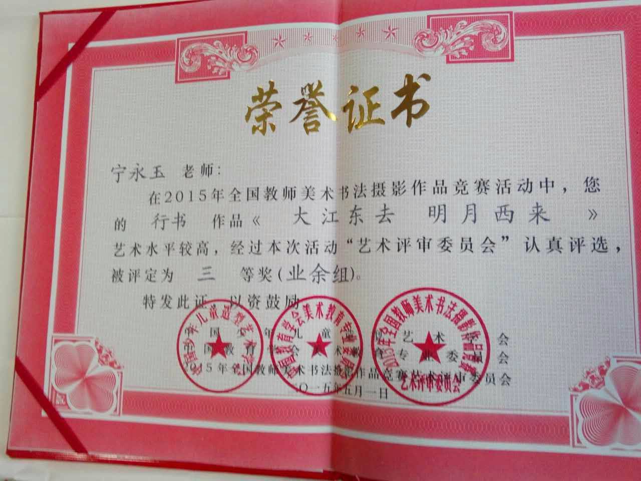 热烈祝贺宁永玉教授在全国教师美术书法摄影作品竞赛活动中作品《观云》,《大江东去,明月西来》分别荣获三等奖!