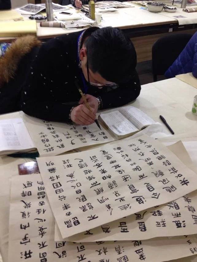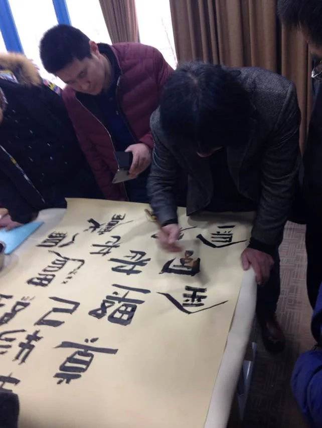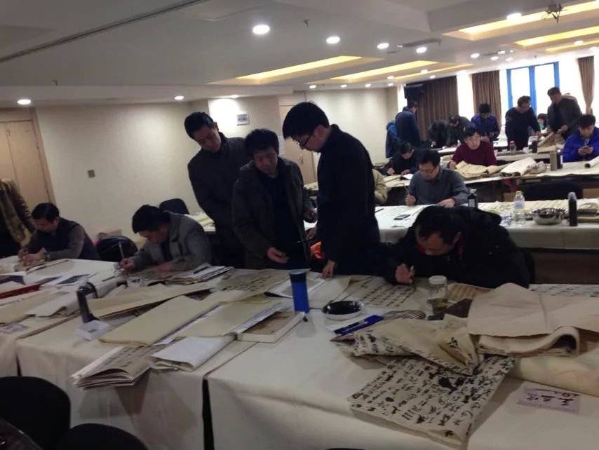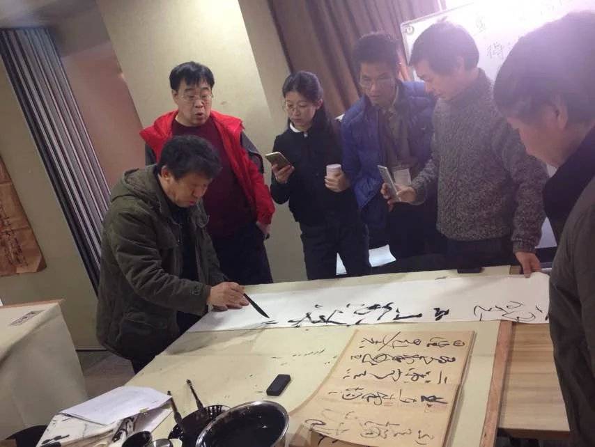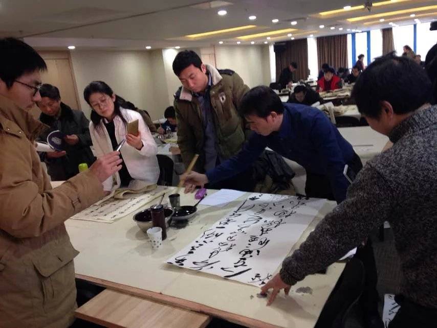 本次培训班从2016年1月20日到1月24日,为期5天,导师为每位学员进行了一对一的针对性辅导,从理论到实践,调整书学理念,确定学习方向,讲解笔法结构,作品创做等各个环节。经过导师的精心指导与各位学员的共同努力,1月12日下午,顺利完成了全部教学计划,并举办了简短而又隆重的结业仪式,三位导师为鼓励各位学员以抽奖形式。抽出三位幸运学员,三位导师无偿为三位学员题写了斋号。