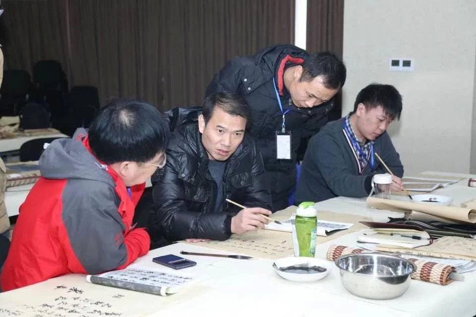 感谢各位同道对书法的执著,因为有了大家在书法艺术上的执著,才有了书法艺术的繁荣,所以也希望在这五天里,我们三位老师尽我们所能,把我们从艺多年的一些心得,包括国展的一些评审的规则,在这里与大家分享。希望大家有所进步,这种进步不单是书法技法,也希望你们开阔视野、明确方向。让你们知道如何写字。你们中,有些学员水平很高,却入不了国展。所以在这五天里,我们几位导师会全力以赴,把我们的一些经验、积累分享给大家,希望在2016年的各项展览中榜上有名。