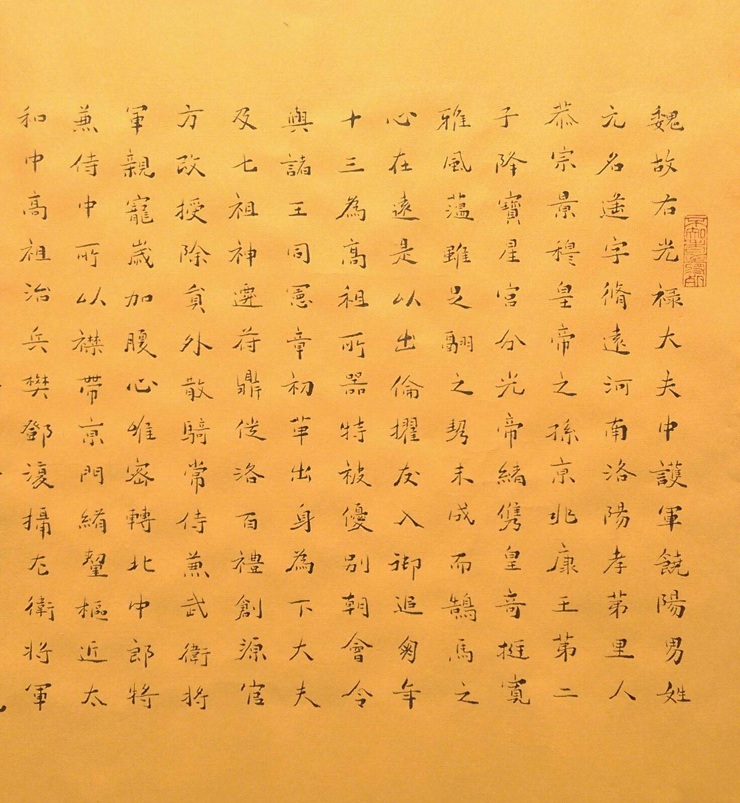 北魏 《 元遥墓志 》北魏孝明帝熙平二年刻,1919年河南洛阳城北后海资村出土,后经于右任捐藏西安碑林。志石长方形,高60厘米,宽63厘米。书法结构匀称,秀丽遒俊,气韵连贯,笔画厚重,为北魏长篇墓志中书法之佼佼者。
