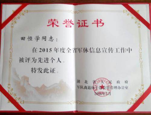 田恒学荣誉展示