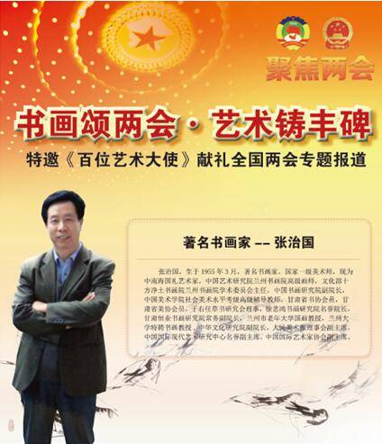 张治国,生于1955年3月,著名书画家,国家一级美术师,现为中南海国礼艺术家,中国艺术研究院兰州书画院高级画师,文化部十方净土书画院兰州书画院学术委员会主任,中国书画研究院副院长,人民艺术家书画院副院长,中国美术学院社会美术水平考级高级辅导教师,甘肃省书协会员,甘肃省美协会员,于右任草书研究会理事,徐悲鸿书画研究院名誉院长,甘肃恒业书画研究院常务副院长,兰州市老年大学国画教授,兰州大学特聘书画教授,中华文化研究院副院长,人民美术报理事会副主席,中国国际现代艺术研究中心名誉副主席,中国国际艺术家协会副主席。