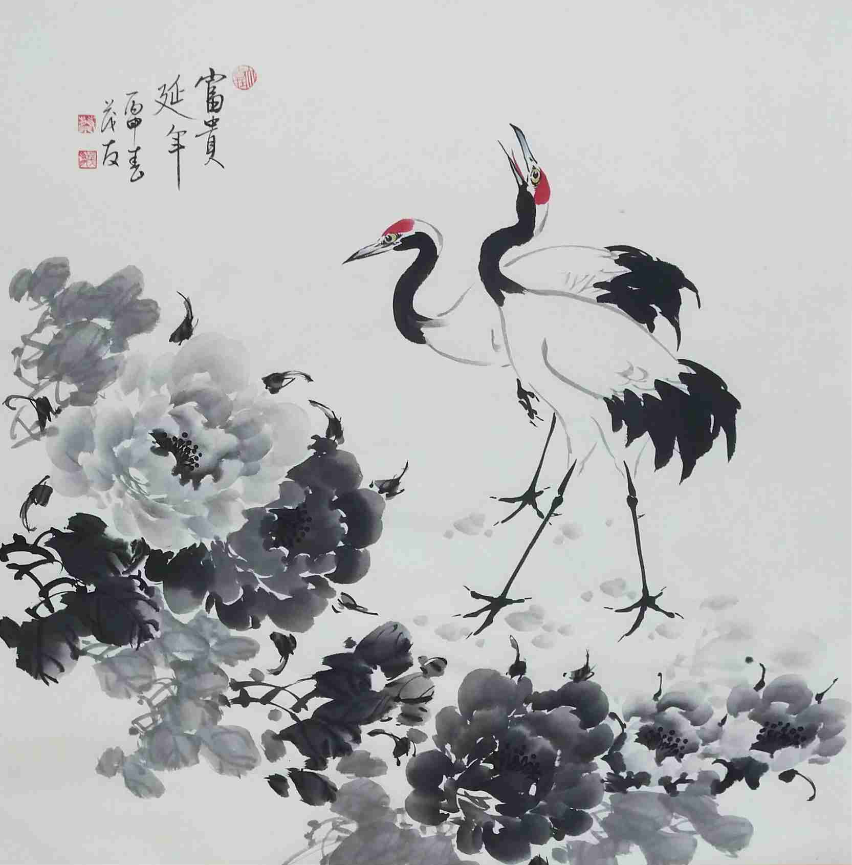 从传统渊源上看,当代水墨牡丹名家蔡茂友的作品大抵属于继徐渭之后将大写意创造空间再度拓展开来。他书法师从启功先生和秦永龙先生,绘画拜崔如琢先生为师。作品朴茂厚重、大气磅礴、个性鲜明,并在长期的实践中,在书法、水墨画等方面取得了突出的成就。他苦研的水墨牡丹画,从墨分五色到墨分千层,主要是立体感,明暗变化。水润冰心,主要是牡丹的质感,水色鲜嫩欲滴,更有一种情绪,一种愉悦感,一种积极向上的情绪,为当代画坛为数不多的水墨牡丹画名家。
