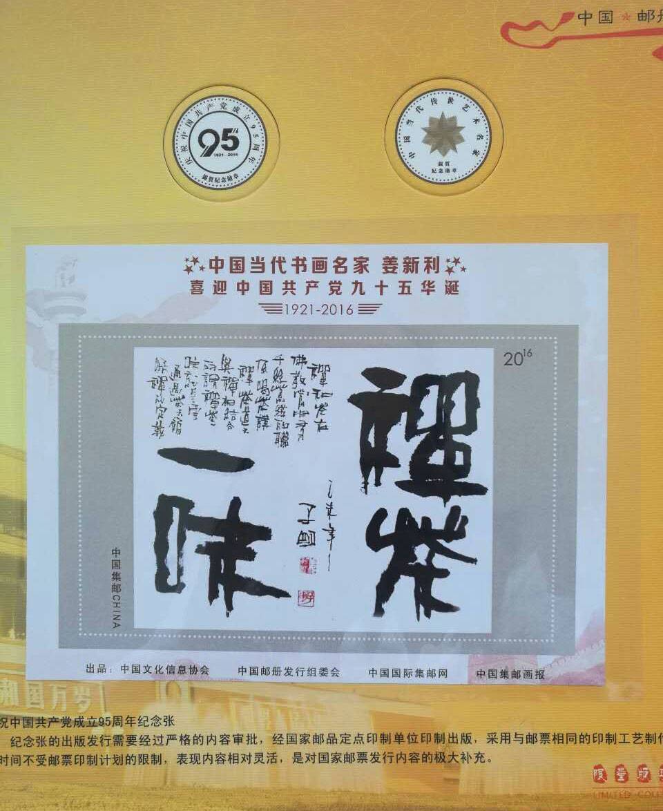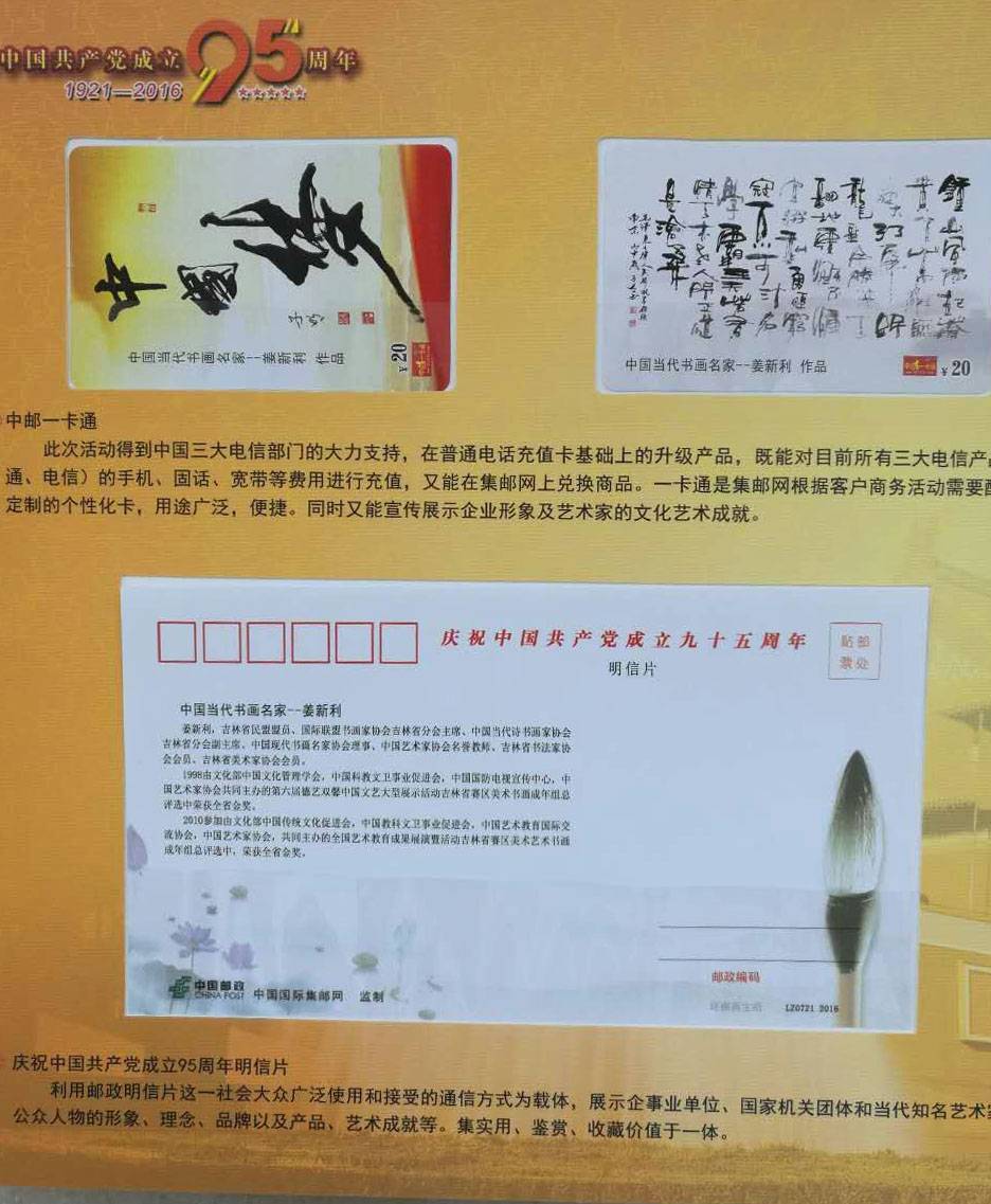 为庆祝中国共产党成立九十五周年,特邀中国书画名家姜新利先生发行纪念邮品。