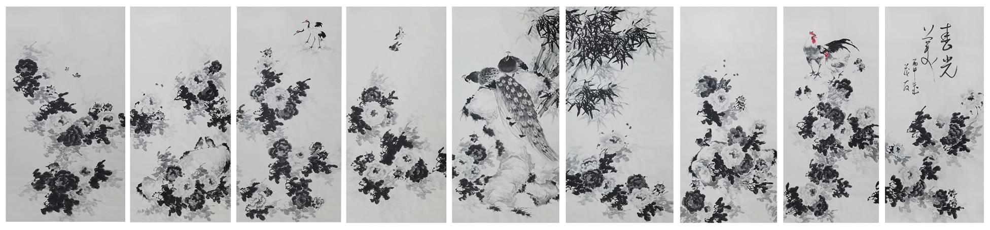 2016年 蔡茂友水墨牡丹《春光美》2.3米X1.1米X9