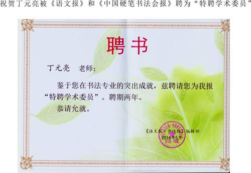 祝贺丁元亮被《语文报》和《中国硬笔书法会报》聘为“特聘学术委员”
