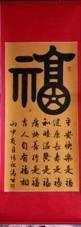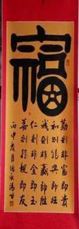 在这里,我概念中的“创意”,首先,是在继承传统,不背离汉字书法最基本的元素,不背离汉字的基本形态和意义基础上的创新。根据当代人的审美趣味,从内容到形式的一种新的整合,强化书法的个性表现力。其次,它不是一段话,也不是整个篇幅的书法创意,而是特指某些单体汉字的书法创意。 比如:康熙御笔“天下第一福”,就是在继承传统基础上的一种创意写法,有多子、多田、多才、多寿、多福的深刻寓意。