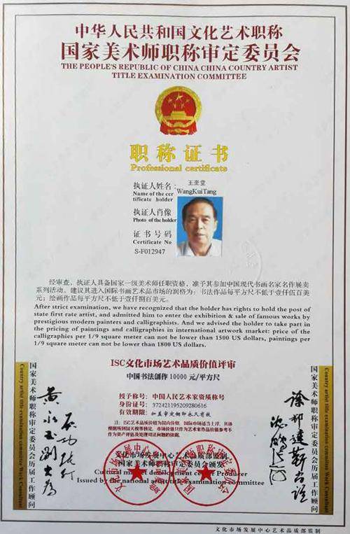 王奎堂证书