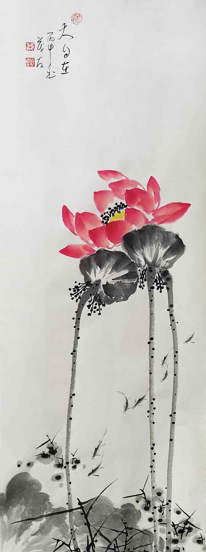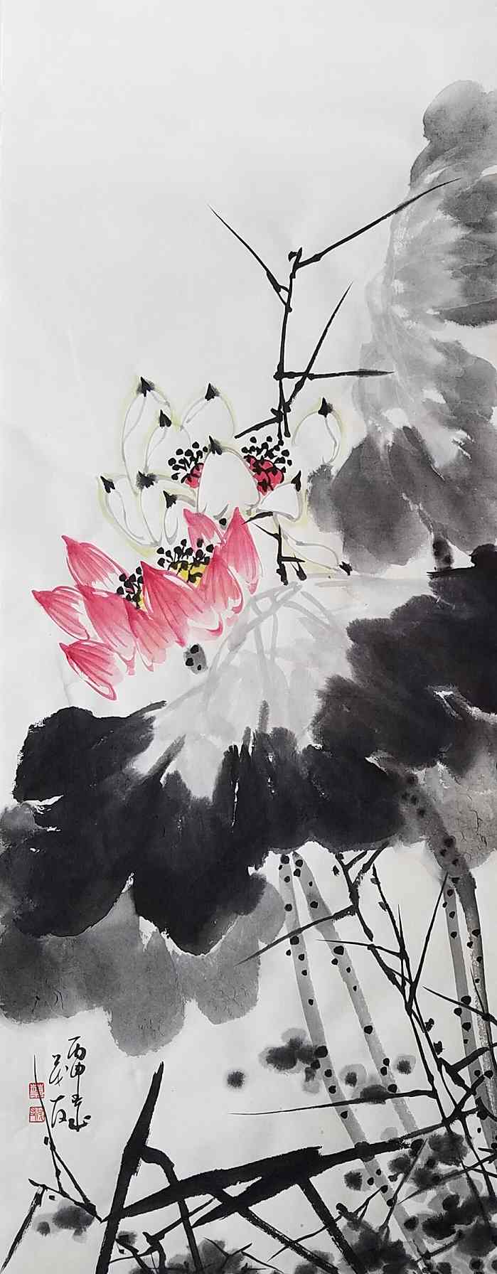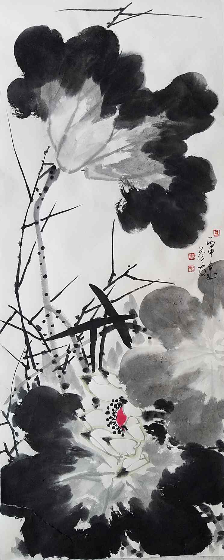 画荷是中国画家一门永恒的课题,历史从古到今,格调从古朴到清新、华艳、秀丽等,各有特色,每位画家的笔下赋予荷花了不同的文化精神,但其艺术终极目标是揭示事物的内在神韵作为最高的艺术追求。基于这种审美指向,又形成了民族特有的美学思想,即讲究绘事后素、返朴归真、大巧若拙等等,这些都成为文人画家在艺术上的自觉追求。在如此创作环境下,一位画家如何思考走出属于自己的精神领地,这将是一个当今社会的文化拷问。然而,蔡茂友在有效强化写意水墨荷花视觉能力的同时,进而赋予了新时代语境下高亢昂扬又饶于生趣的写意内在精神,从而在区别前人的基础上把写意花鸟画推向了一个以往未曾的境地,这当是他的水墨荷花新作中所展现出来的新特质。