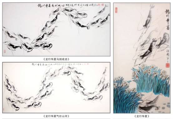 近年来,围绕实现中国梦这个时代主题,他在书画创作中,用神采各异的群虾组合成巨龙之势展示于世,更觉匠心独到,喻意深邃。不仅每只虾通过在水中的灵动,能充分体现出肢体语言、音乐节奏,舞蹈动态,形成“以我观物,万物皆著我之情感”,而由这样的群虾组合之巨龙,更有随时呼之而出、腾空而起的强劲之势,似如中华民族同心协力,追梦圆梦势不可挡的真实写照和象征。可见一位真正有责任,有担当的人民艺术家创作每一副精品用心之良苦,见解之独到。张治国先生画虾用笔巧妙精当,有轻重、软硬、厚薄之变化,姿态各异,变化无穷。他注重写意,突出的是无比的生动和气韵,真正做到了如唐代书画大师兼美术理论家张彦远在《历代名画记》中所说:“移其形似,而尚其骨气,以形似之外,求其画”。