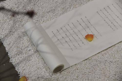 11月19号,问石书法展——素音记第二季在798方圆美术馆举办,宁静的书法作品和枯山水的空间布局,使得展览现场清幽富有禅意,此次展览展出了问石两年来精心创作的的书法作品三十多件,其中60米长的《地藏菩萨本愿经》和《佛说四十二章经》作为展览的两件巨幅作品作品,得到了到场嘉宾的热议,艺术家每天潜心修行,坚持书写,每天打坐写字就像呼吸一样平常,艺术家的执着感染着到场的每一位观众。
