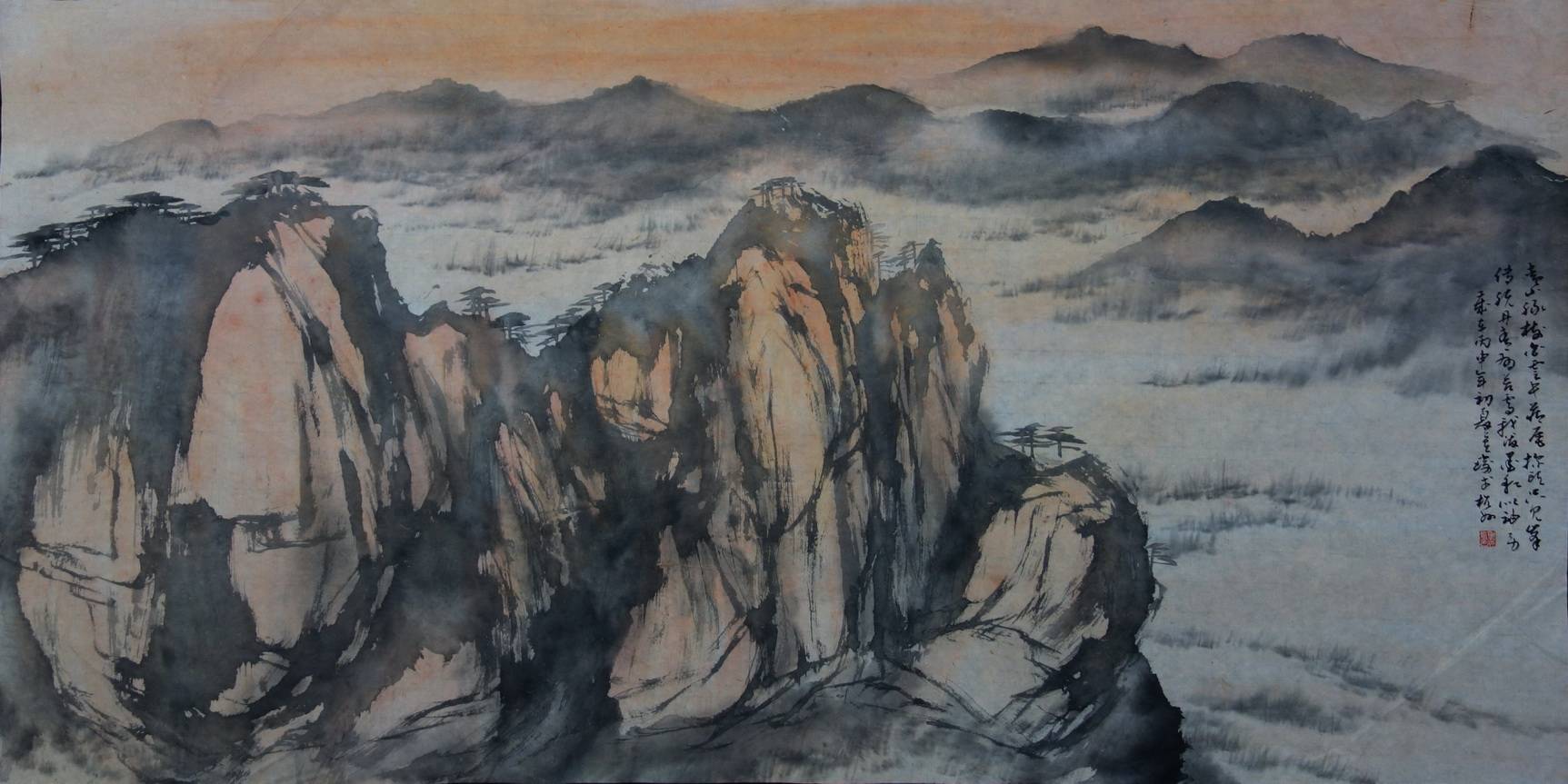 黄山最爱怪松石,雨后朦胧白雾迷。